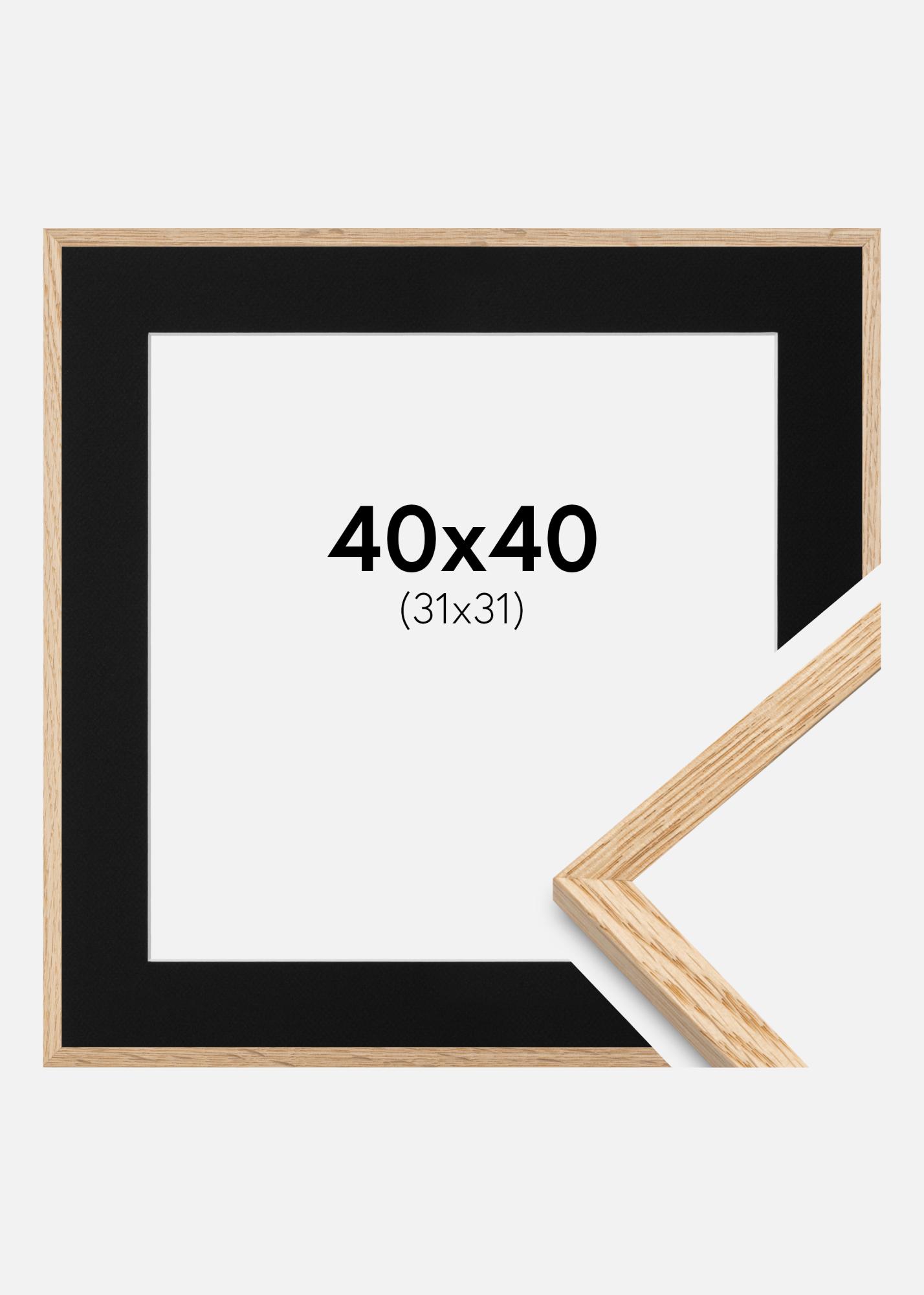 Рамката има ширина 11 мм и дълбочина 13 мм, което дава дискретно, но все пак присъстващо усещане на стената. Матово покритие допълва черния паспарту и създава хармонична цялост. С външни размери 41,5x41,5 см, тази квадратна рамка е перфектна за снимки с размер 32x32 см.