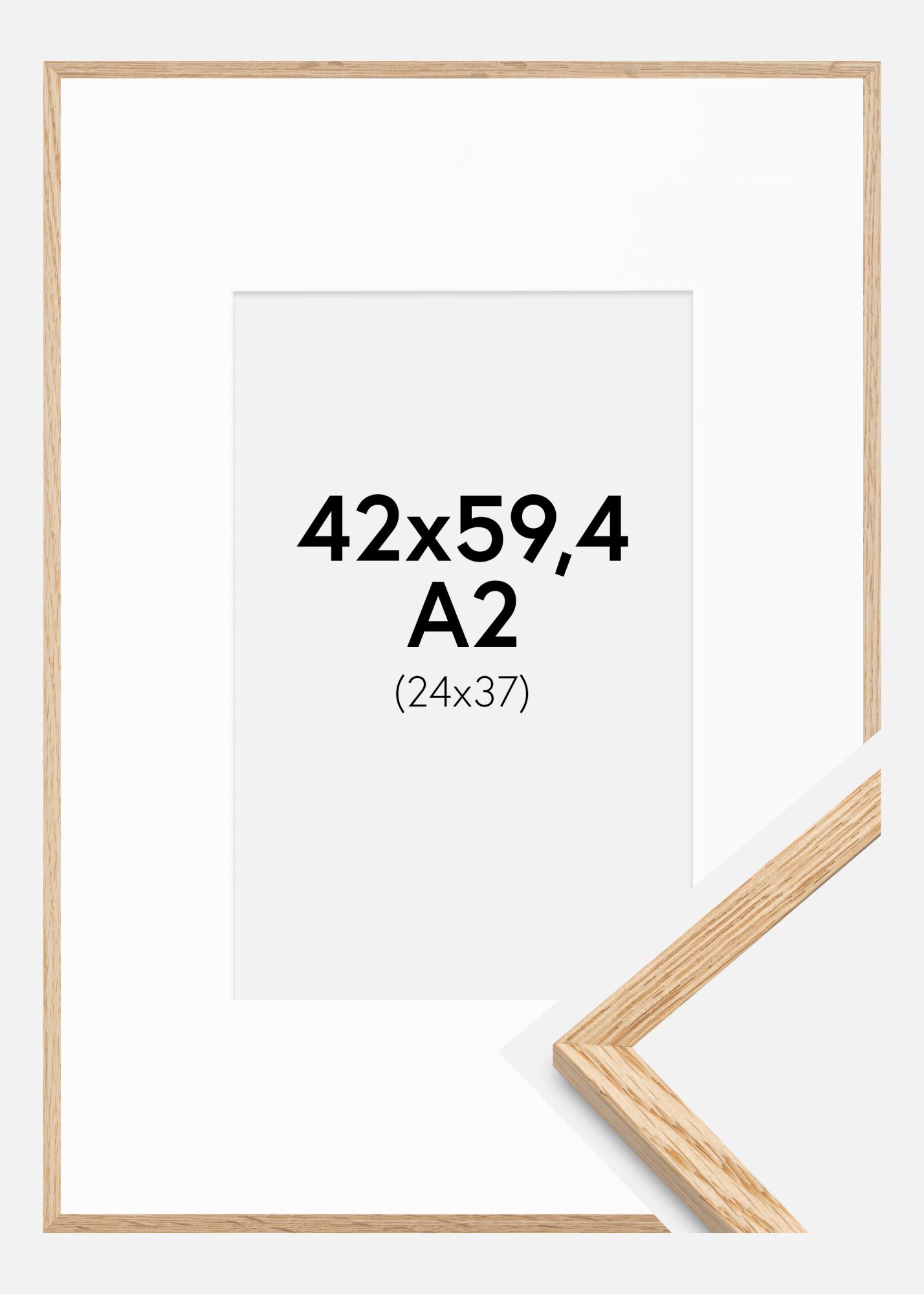 Рамка Тънък дъб 42x59,4 cm (A2) - Паспарту бяло 25x38 cm