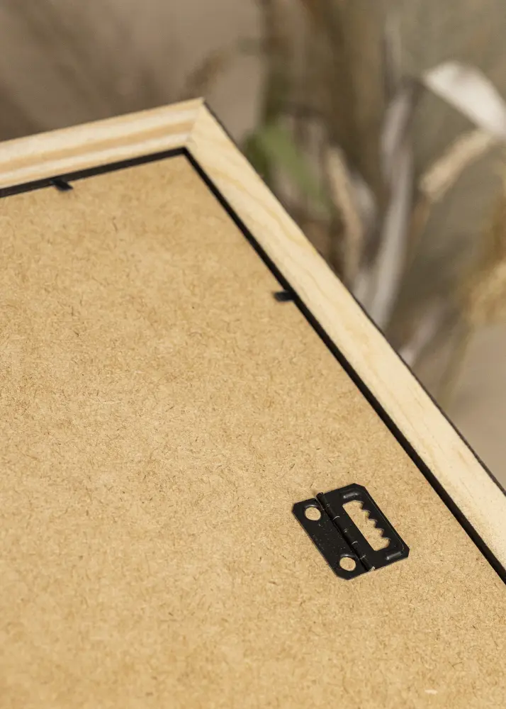 Тази солидна дървена рамка е изработена с акрилно стъкло, чиито предимства са, че е нечупливо и леко на тегло. На задната част ще намерите окачвания, които ви позволяват да изберете дали да монтирате рамката във вертикално или хоризонтално положение. Задната част се държи на място с помощта на огъващи се щифтове, с които можете да отделите задната плоча, за да поставите вашата снимка в рамката.