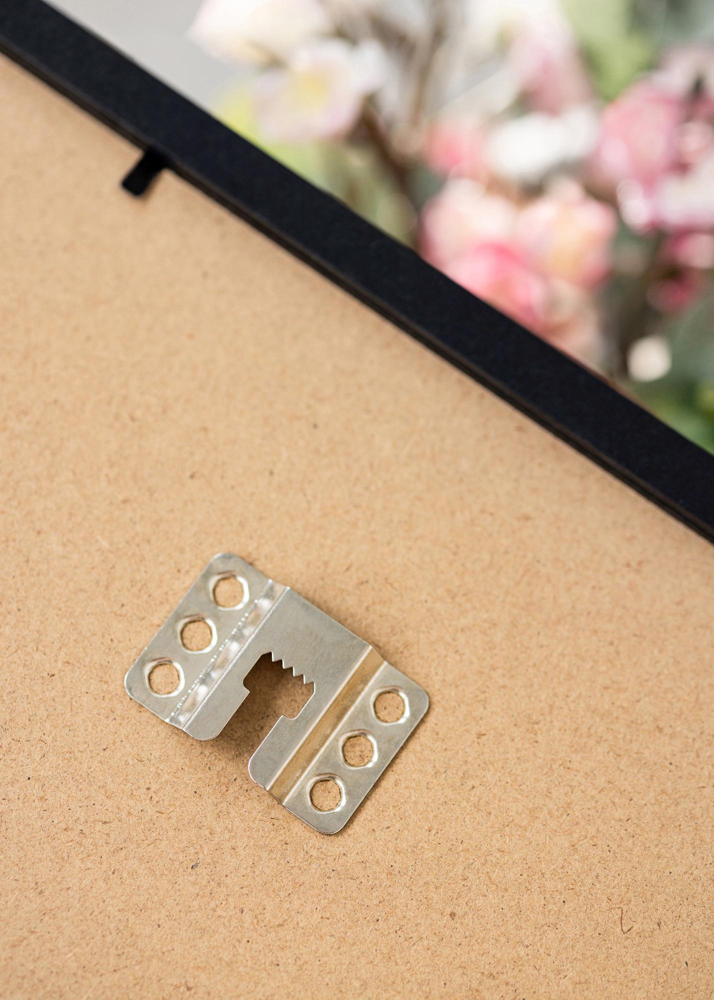Благодарение на това, че рамката е снабдена с акрилна стъклена плоча, тя е издръжлива и лека – акрилното стъкло е именно леко и нечупливо! Рамката е изработена от MDF и има задно покритие от картон, което се държи на място от сгъваеми щифтове. За да поставите вашите снимки, огънете щифтовете и махнете задната плоскост. Бързо и лесно!