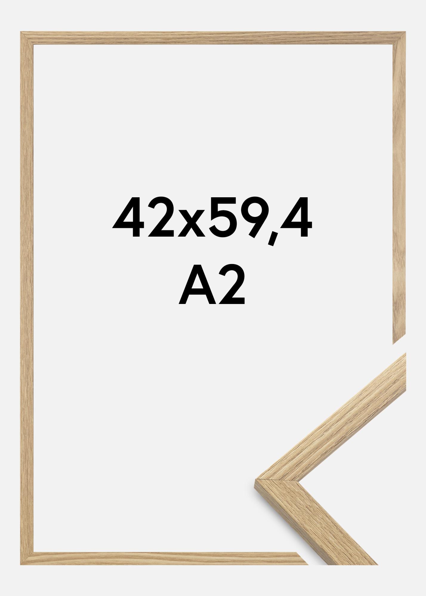 Рамката е изработена от MDF-материал с фолирана повърхност в цвят дъб и има тънък профил на рамката от 14 мм. Има достатъчно място да допълните картините си с луксозен паспарту, благодарение на вътрешната дълбочина на рамката (фалсова дълбочина) от 12 мм.