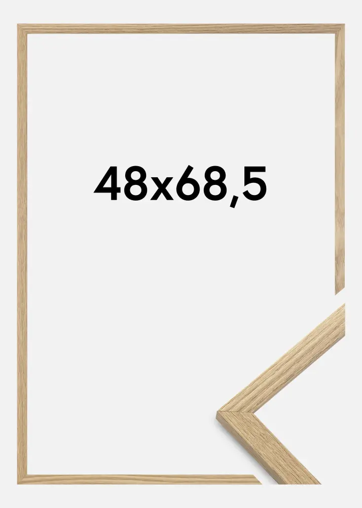 Рамката е изработена от MDF-материал с фолирана дъбова повърхност и има тънък профил на рамката от 15 мм. Има достатъчно пространство, за да допълните снимките си с луксозен паспарту, благодарение на вътрешната дълбочина (фалцова дълбочина) на рамката от 9,5 мм.