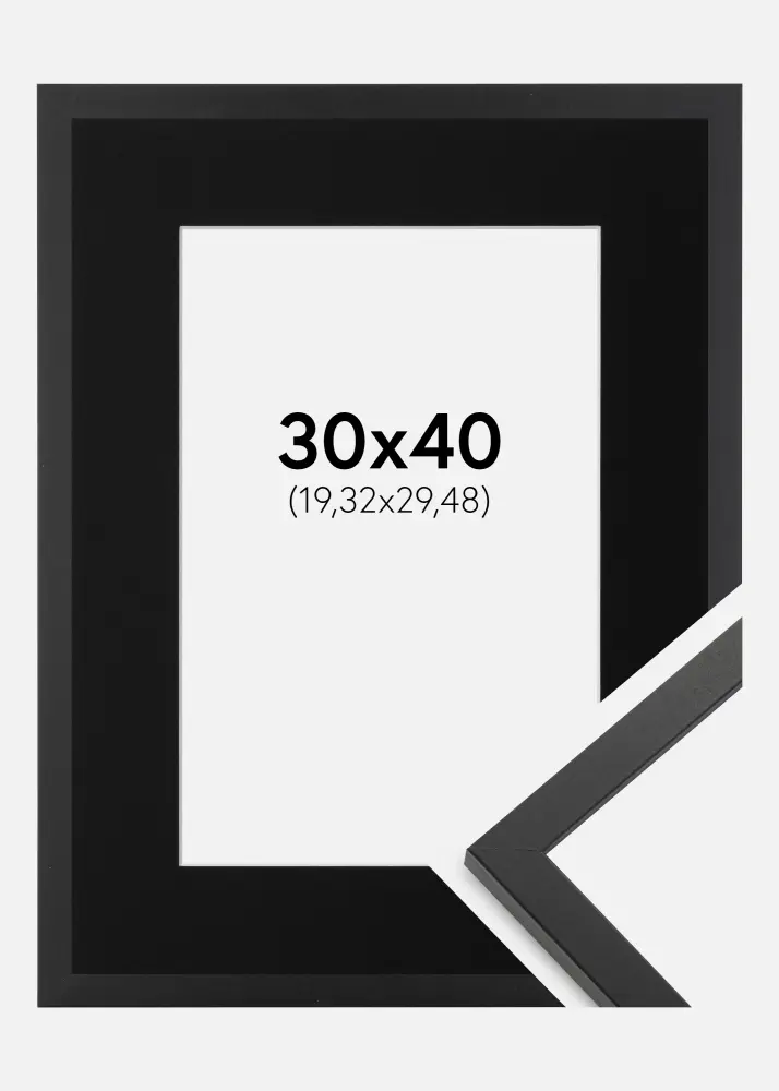 Рамка Trendy Черно 30x40 cm - Паспарту Черно 8x12 inches