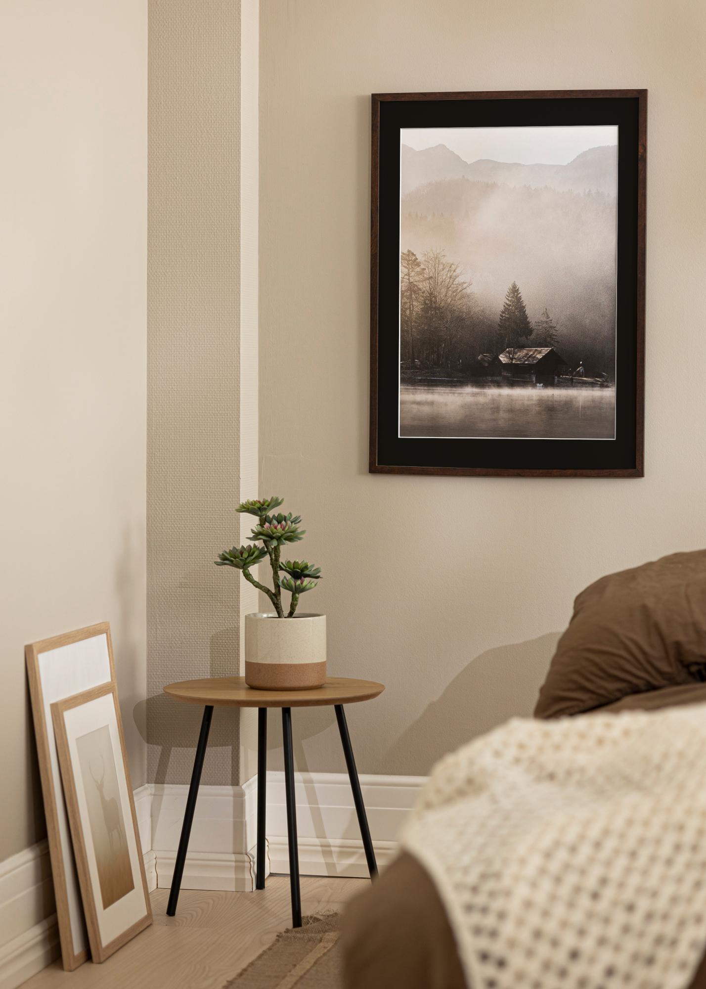 Фоторамката има матово покритие и стилна ширина от 15 мм, която допълва всички видове интериори. С контрастиращия черен цвят на паспартута се създава визуална пауза, която привлича окото към изображението и засилва неговото изражение.