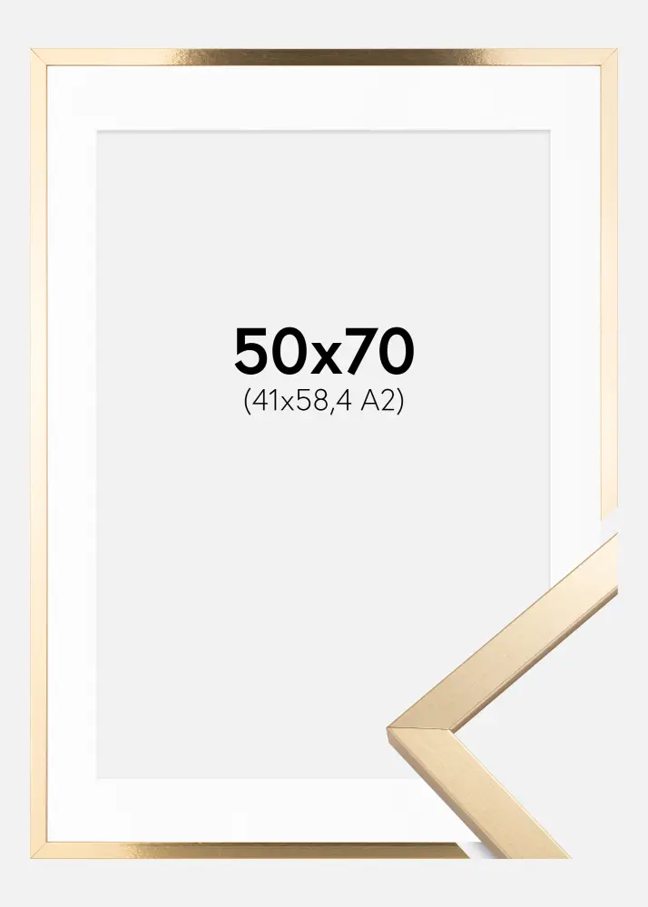 Разкрасете дома си с докосване на елегантност чрез тази златна рамка с бял паспарту. Перфектната комбинация за изтъкване на вашето A2 изображение (42x59,4 см) със стил. Лъскавата повърхност и ширината от 15 мм на рамката създават изискана рамка, която привлича вниманието на зрителя и придава повдигане на произведението.