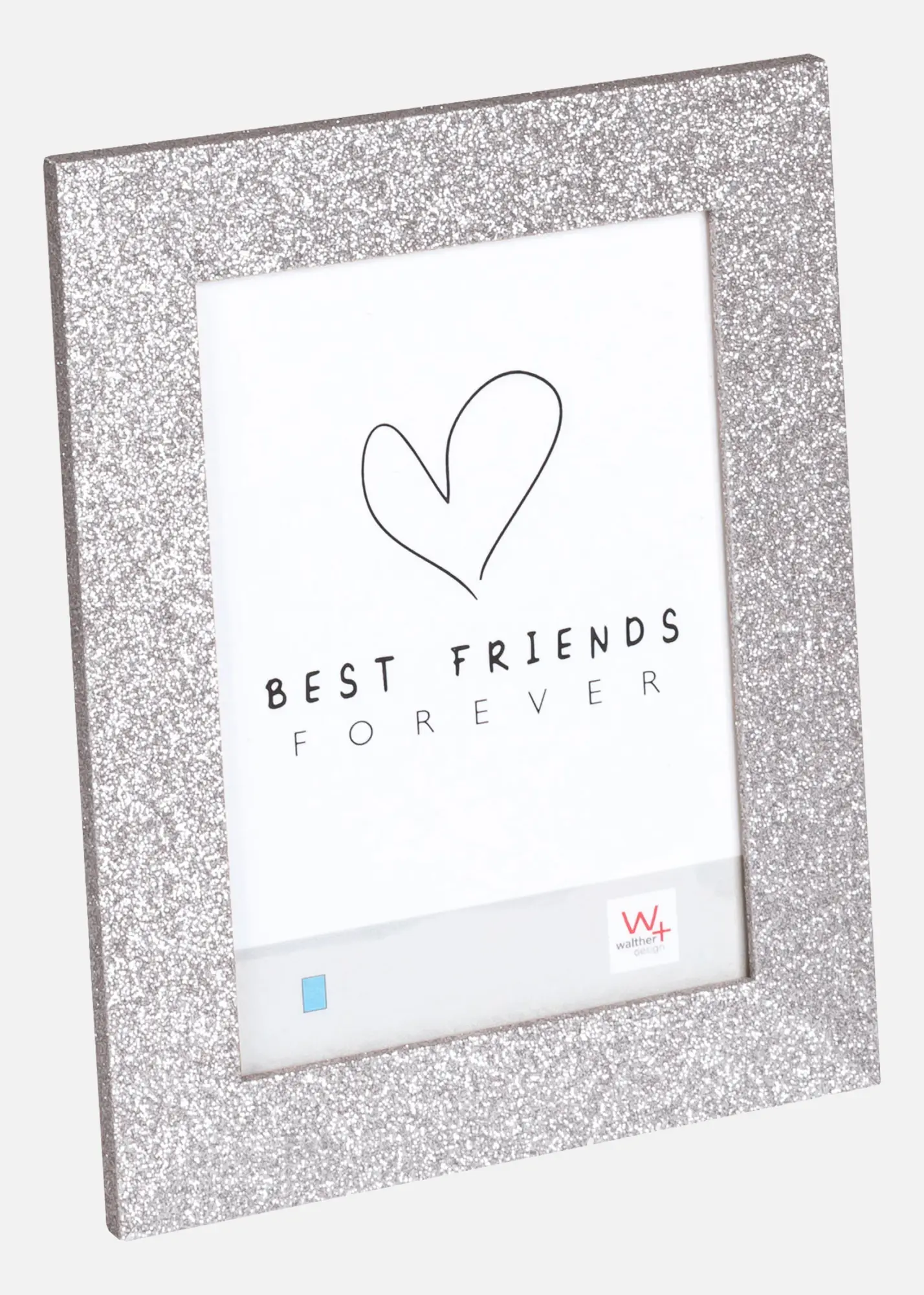 Рамка Twinkle сребърен цвят 10x15 см е блестяща рамка, която съчетава елегантност и гламур по невероятен начин. Широкият ръб с блестяща повърхност отразява светлината красиво и придава луксозно усещане на вашите снимки.