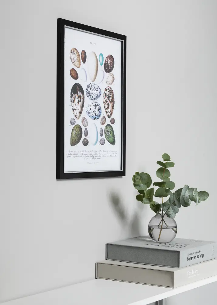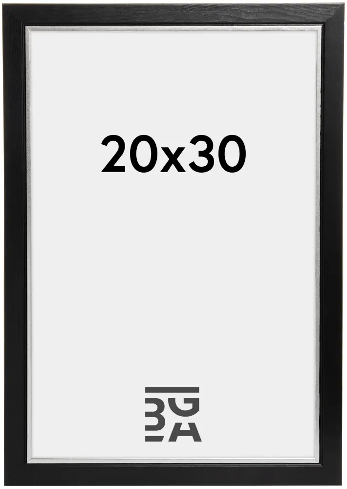 Ексклузивна черна фоторамка от дърво с малък допълнителен "Twist" под формата на красив сребрист кант в близост до мотива. Отличен избор, когато търсите рамка, която придава допълнителна дименсия на мотива. Перфектна за поставяне на рафт за картини за стилен колаж.
