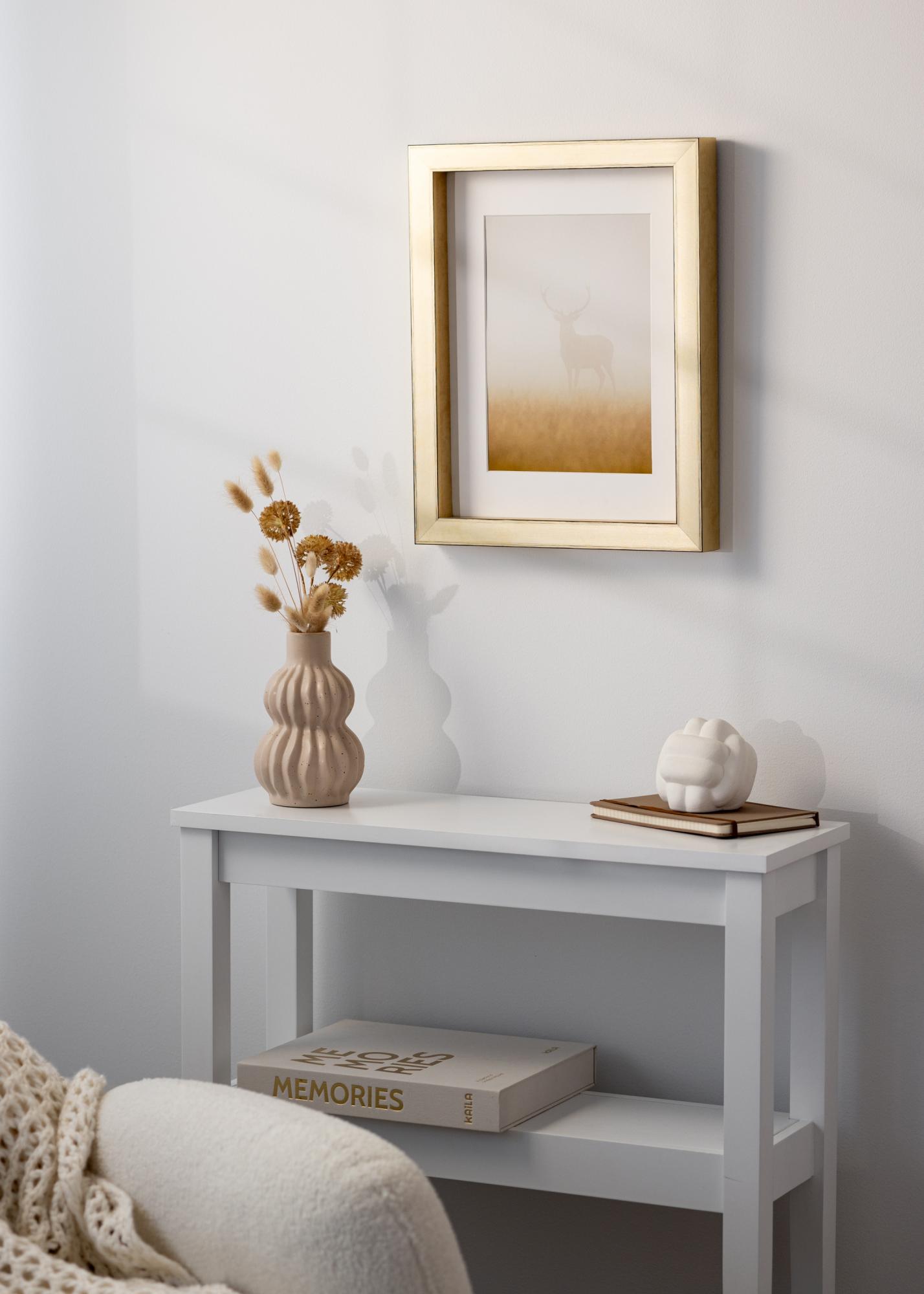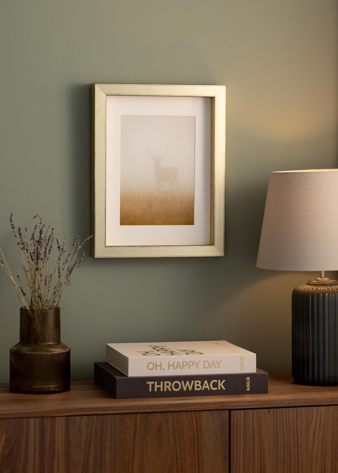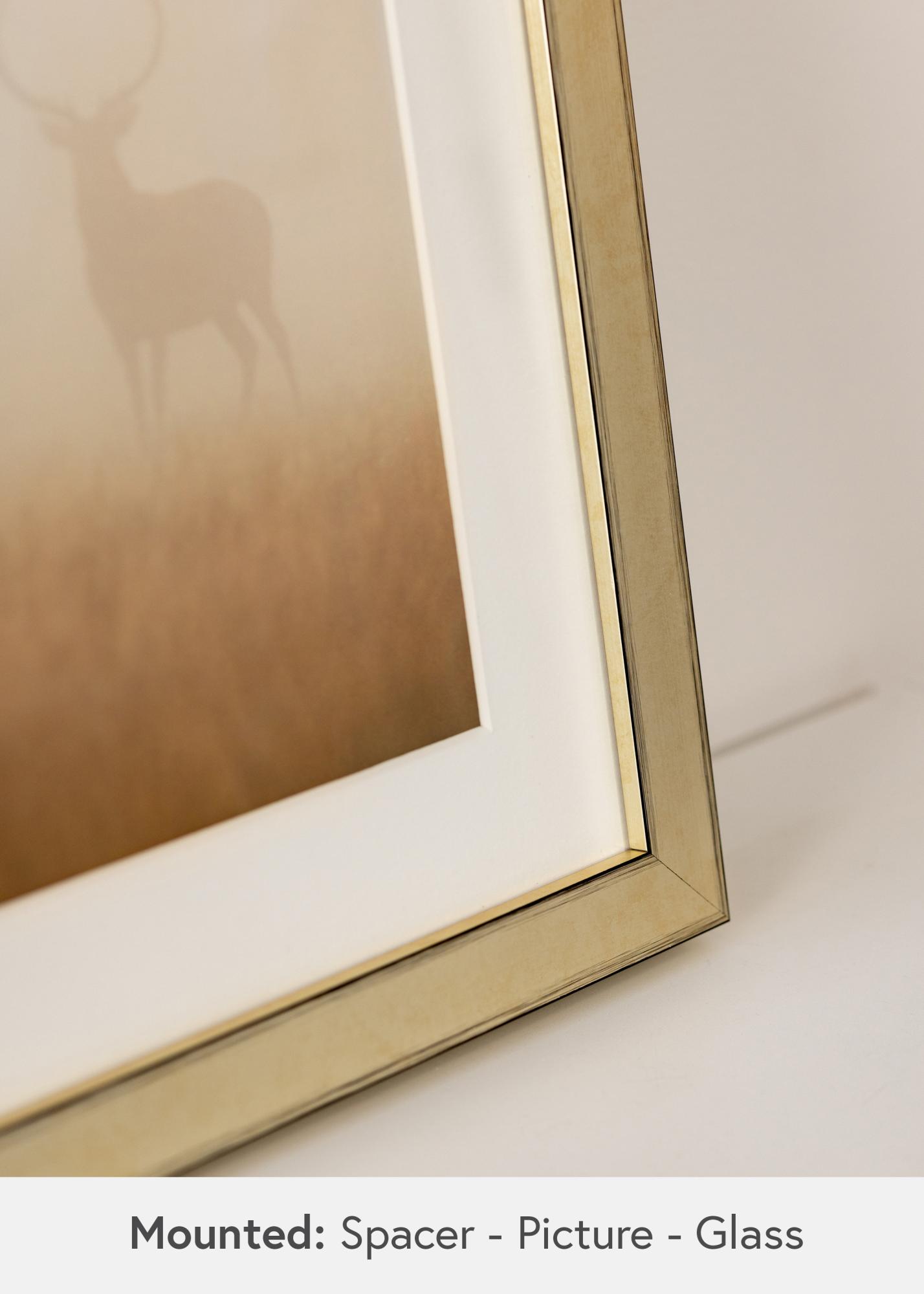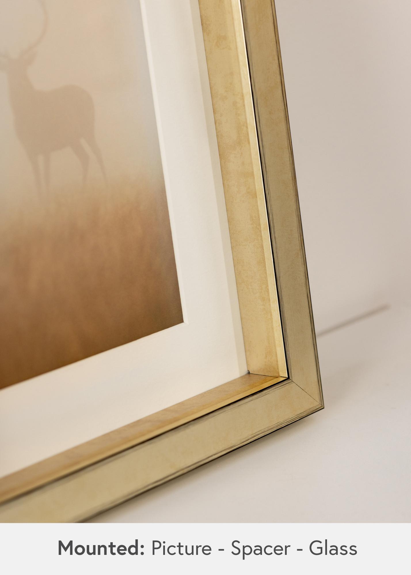 С Ram Tyr Злато имате възможност да адаптирате начина, по който искате да представите своя мотив. Можете да го поставите в дъното на рамката, за да създадете висящо впечатление, или по-близо до предната част за по-традиционна обрамка. Тази гъвкавост улеснява съчетаването на рамката с както вашето произведение на изкуство, така и с интериорния ви стил.