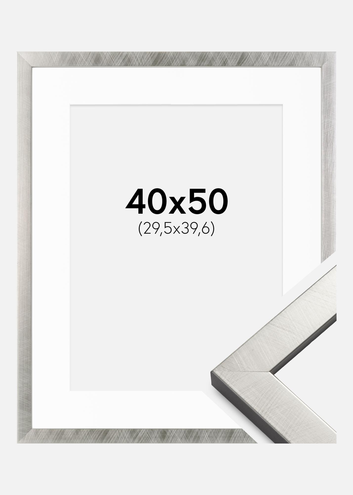 Рамка Uppsala Сребро 40x50 cm - Паспарту бяло 12x16 inches