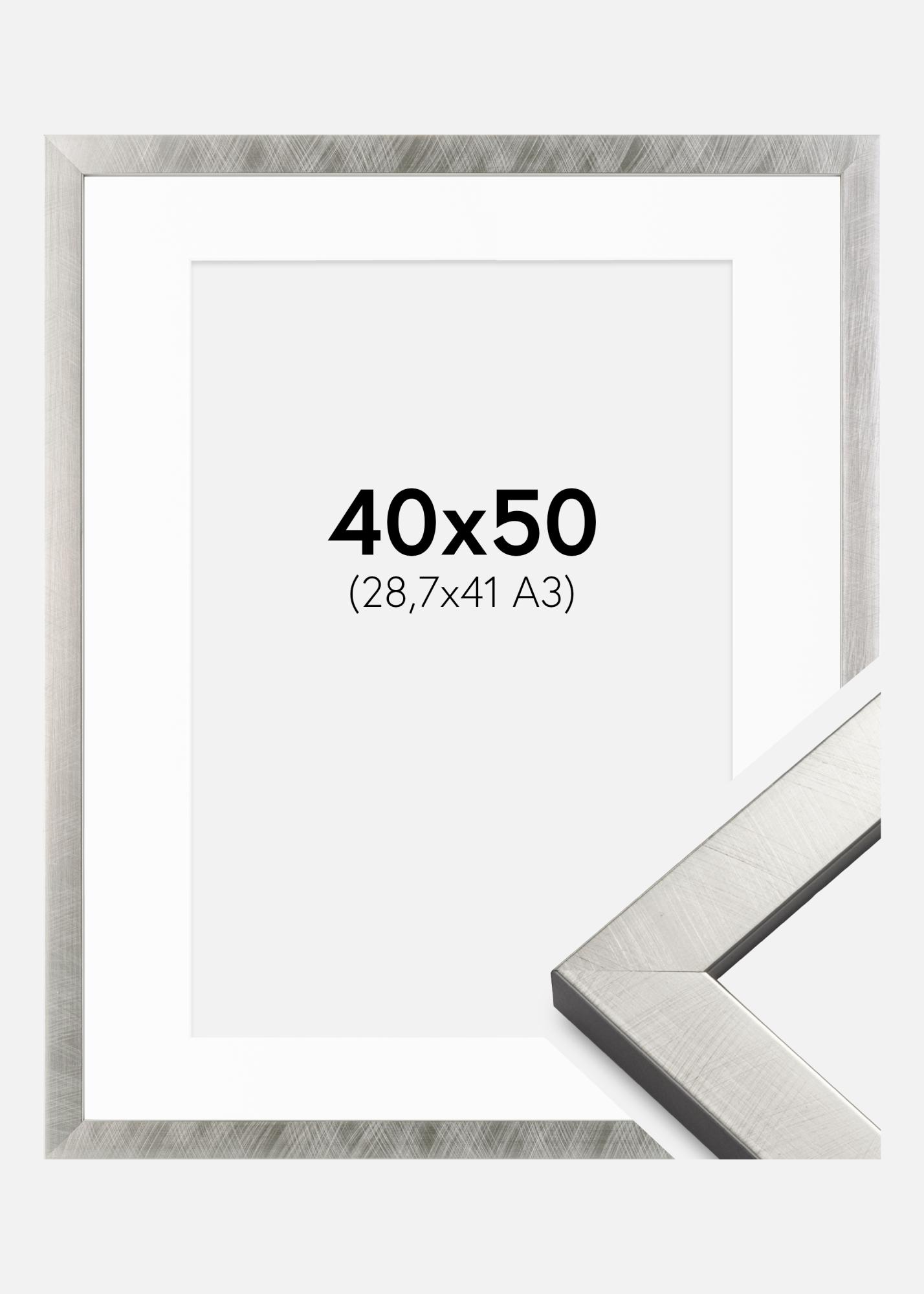 Рамка Uppsala Сребро 40x50 cm - Паспарту бяло 29,7x42 cm (A3)