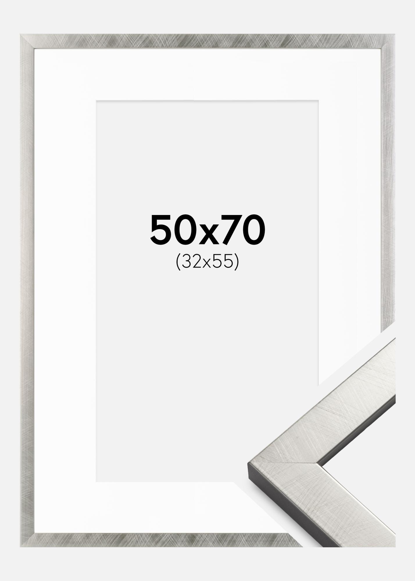 Разкрасете дома си с елегантна сребърна рамка, която красиво обрамчва вашите снимки с размери 33x56 см. Придружаващият бял паспарту подчертава вашата фотография или произведение на изкуството, като създава визуална пауза между снимката и рамката, което усилва преживяването на зрителя и придава професионален завършек. Бялото на паспартуто допълва снимката и помага да се предпази от директен контакт със стъклото.