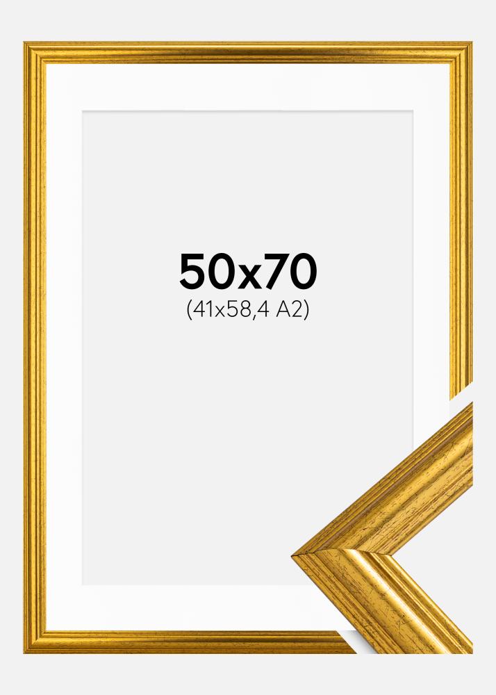 Изпитайте елегантността и класическата красота с нашата златна рамка, перфектна за да подчертае вашето произведение на изкуството или фотография във формат A2 (42x59,4 см). Приложеният бял паспарту придава професионален завършек и позволява вашият мотив да стане център на стената.