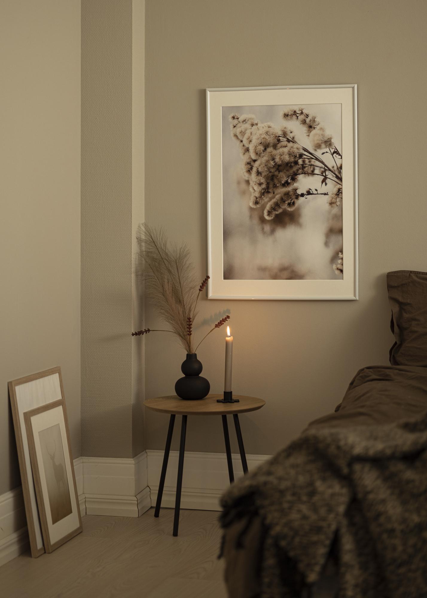 С тази рамка за картина твоите мотиви могат да получат модерно обрамчване, благодарение на тънката лайсна с лъскав завършек. Белият цвят я прави подходяща за различни видове мотиви, например плакати, рисунки или снимки на семейството. С вътрешна дълбочина от 15 мм имаш достатъчно място да допълниш тази рамка с паспарту и по този начин да придадеш на снимките си по-ефирно обрамчване с още повече фокус върху мотива. За да поставиш своите снимки, завърти металните клипсове на задната част на рамката, освободи задния панел и постави мотивите в рамката.