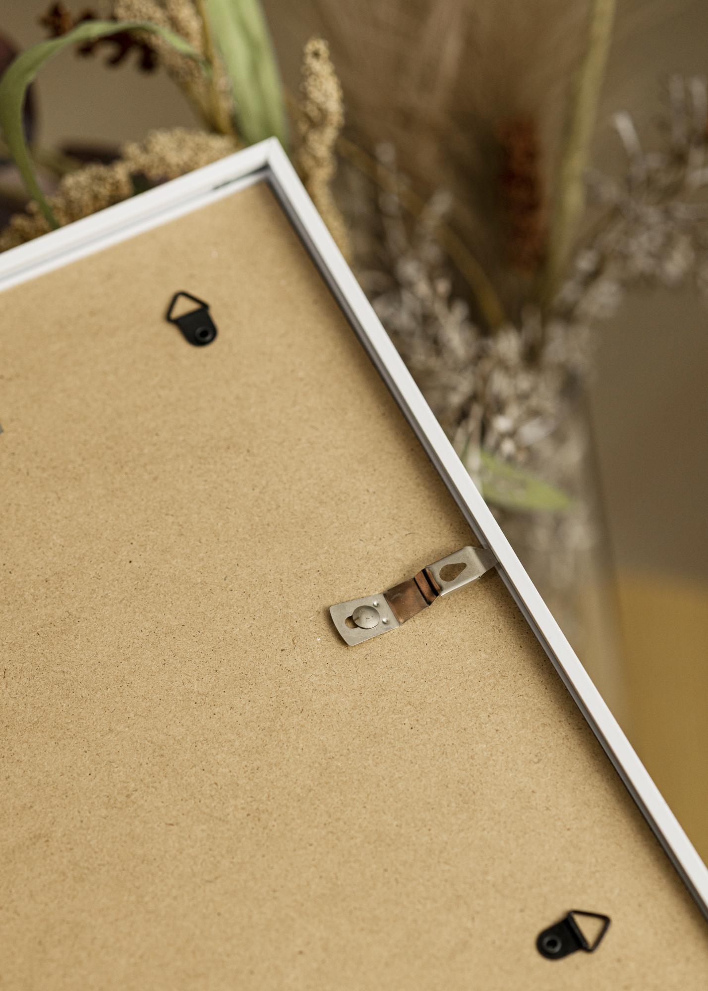 С тази рамка за картини вашите мотиви могат да получат модерна рамка, благодарение на тънката лента на рамката с блестящо покритие. Белият цвят позволява тя да се съчетае добре с различни видове мотиви, например постери, рисунки или фотографии на семейство. С вътрешна дълбочина от 15 мм ще имате достатъчно пространство да допълните тази рамка с паспарту и по този начин да придадете на вашите снимки по-ефирна рамка с още повече фокус върху мотива. За да поставите вашите снимки, завъртате металните клипове на гърба на рамката, освобождавате задната част и поставяте мотивите в рамката.