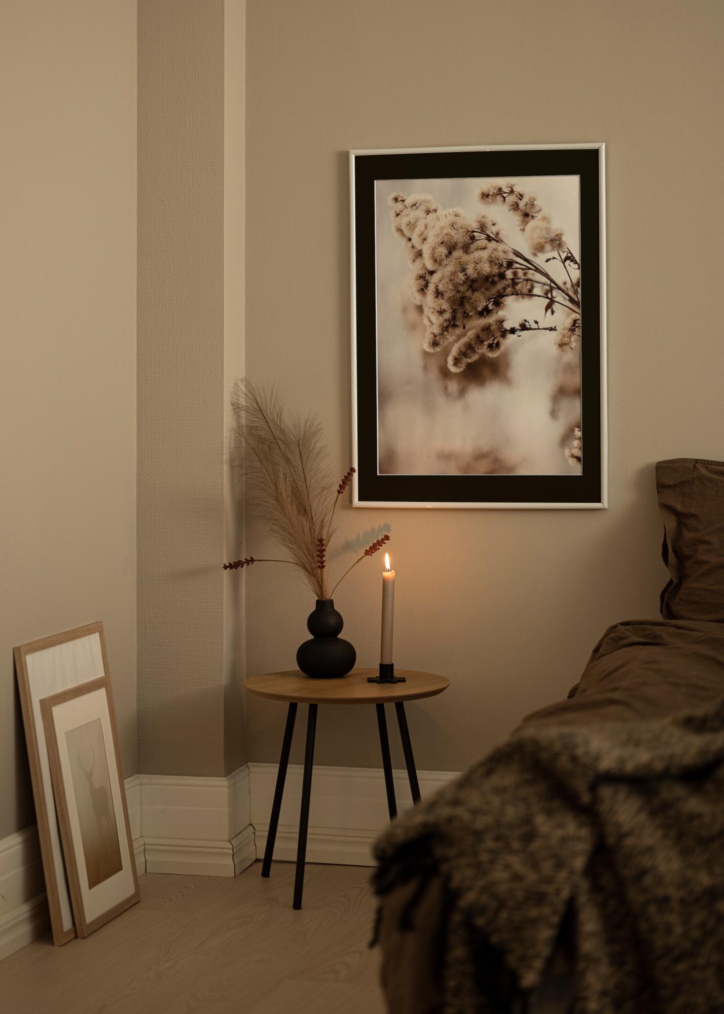 Рамката е с тънка широчина от само 7 мм и дълбочина от 14 мм, което осигурява дискретен, но все пак отличителен контур около вашето изображение. Лъскавата повърхност на рамката допълва паспартуто и създава хармонично цяло, което се вписва във всяка стая. С черното паспарту получавате и допълнително измерение на елегантност и професионална презентация.
