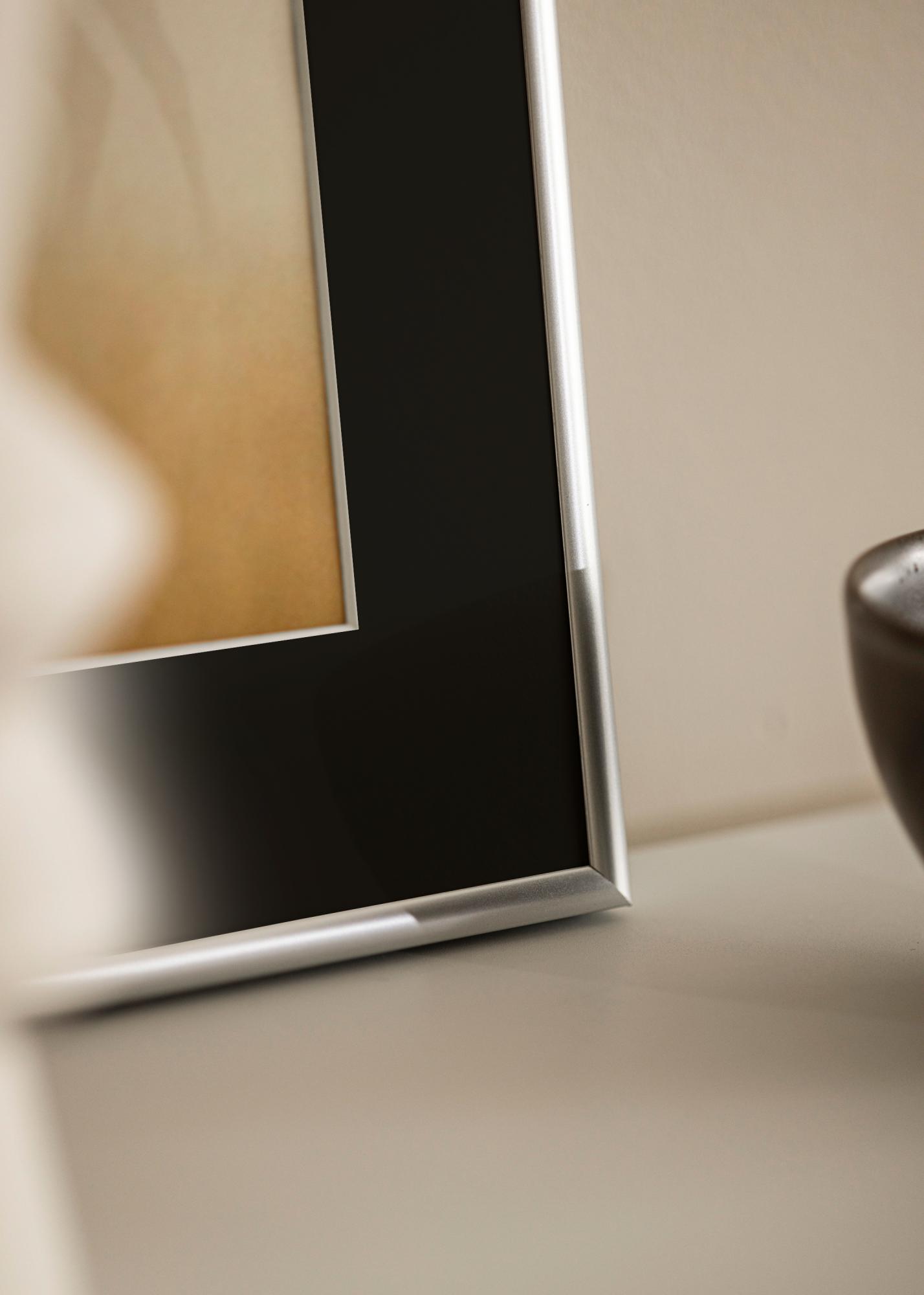 Рамката има тънък профил със ширина от 12 мм и дълбочина от 19 мм, което осигурява прекрасен баланс между здравина и финес. Освен това тя е оборудвана с черен паспарту, който елегантно рамкира вашето изображение в размер 20x28 см, създавайки дълбочина и професионално представяне.