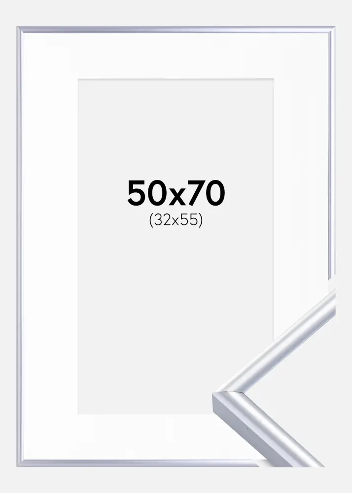 Рамка Victoria Сребро 50x70 cm - Паспарту бяло 33x56 cm