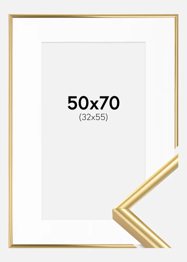 Изживейте изкуството на елегантност с нашата златна рамка, снабдена с бял паспарту, което подчертава вашата снимка с размер 33x56 см. Тънката ширина на рамката от 12 мм осигурява красива обрамчване, без да доминира, докато дълбочината от 19 мм създава отчетлив профил. Лъскавата повърхност на рамката отразява светлината прекрасно и допринася за луксозно усещане в стаята ви.