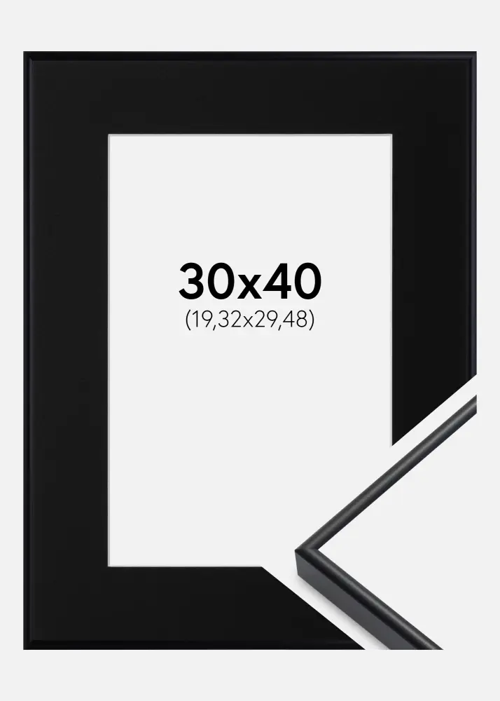 Рамка Visby Черно 30x40 cm - Паспарту Черно 8x12 inches