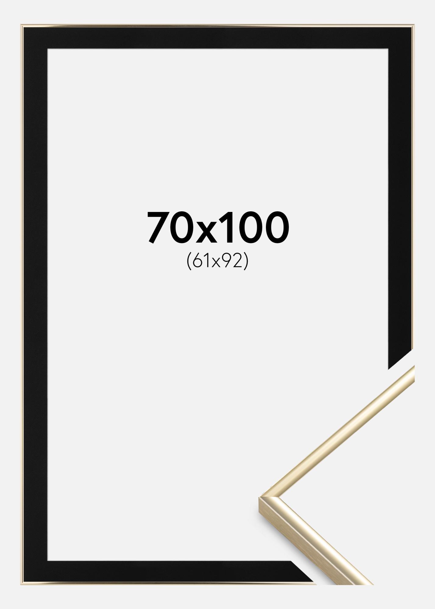 Изживейте лукса да рамкирате любимите си снимки с нашата елегантна златна рамка с черен паспарту. Тази изискана рамка е перфектна за подчертаване на произведения на изкуството или фотографии с размер 62x93 см. Със своята лъскава повърхност и стилна ширина на профила от 6,5 мм, тя носи отличителен акцент на вашата стенна декорация.