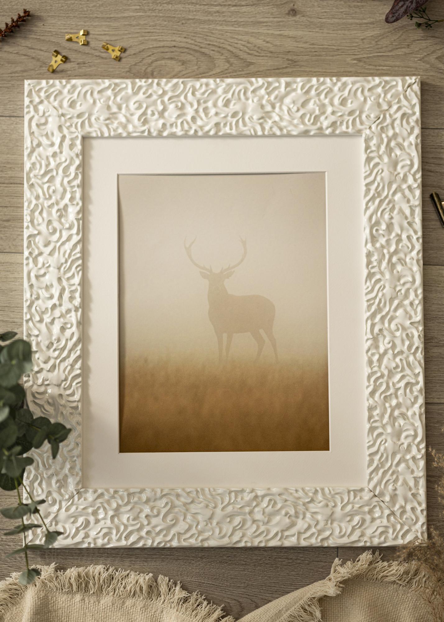 Рамка Westminster Бяла е рамка за картини по поръчка, изработена в нашето собствено ателие за рамки. Със своята високо гланцова бяла повърхност и живи, органични мотиви, тази фоторамка предлага модерно и елегантно усещане. Блестящото покритие подчертава меките, плавни форми и придава на рамката ексклузивно излъчване, което наистина привлича окото.
