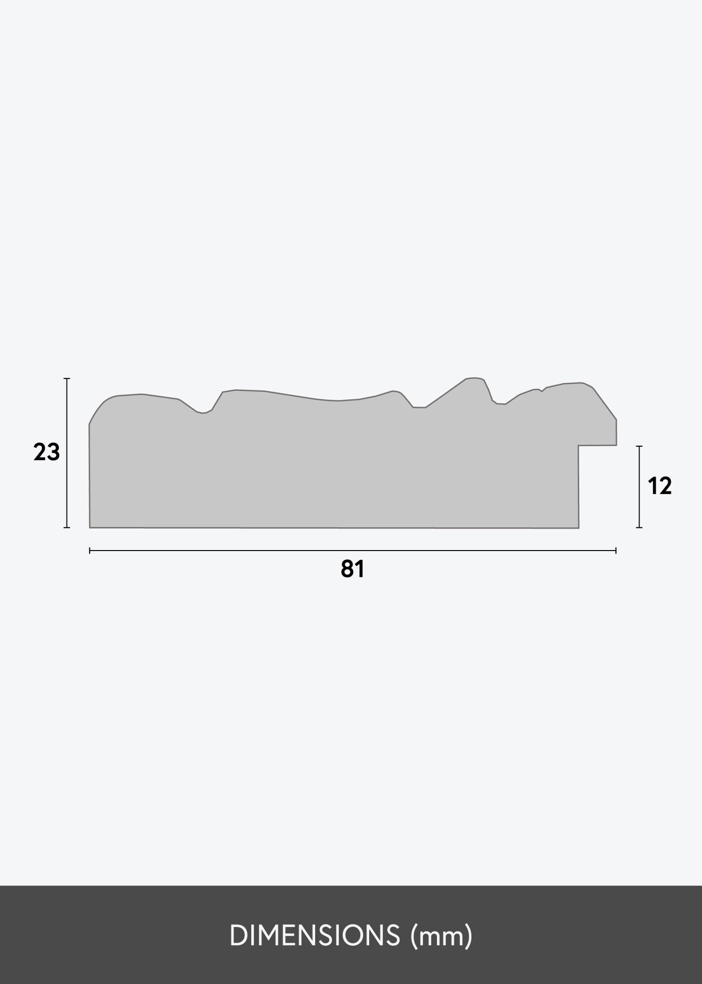 Тази рамка за картини има 81 мм широка рамка и дълбочина от 23 мм, което я прави както здрава, така и стилна. Изработена от бор, тя комбинира класическо вдъхновение със съвременен дизайн, което я прави идеална за тези, които търсят впечатляващ детайл в дома или офиса си.