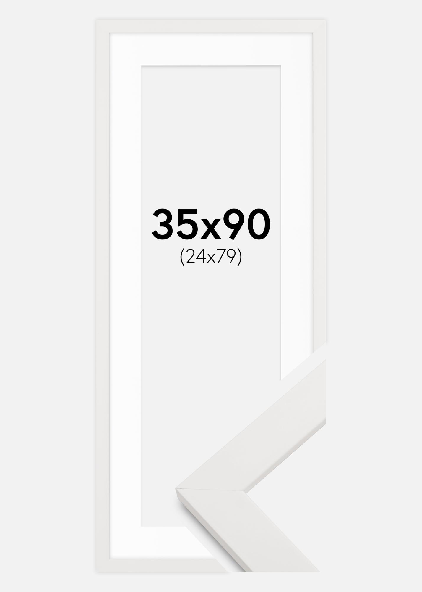 Рамка Бяло дърво 35x90 cm - Паспарту Бяло 25x80 cm