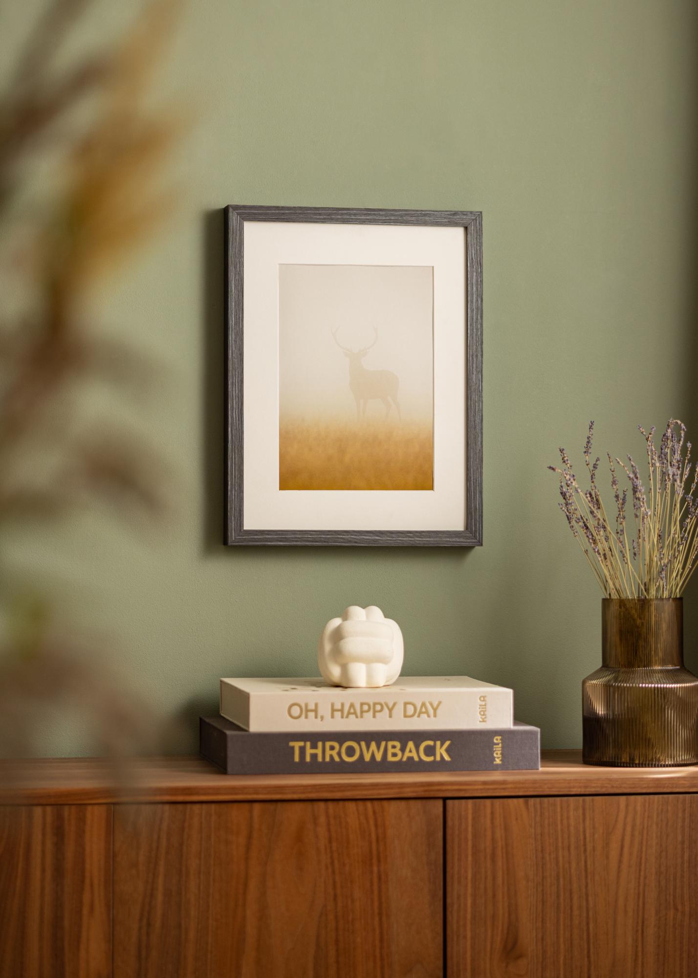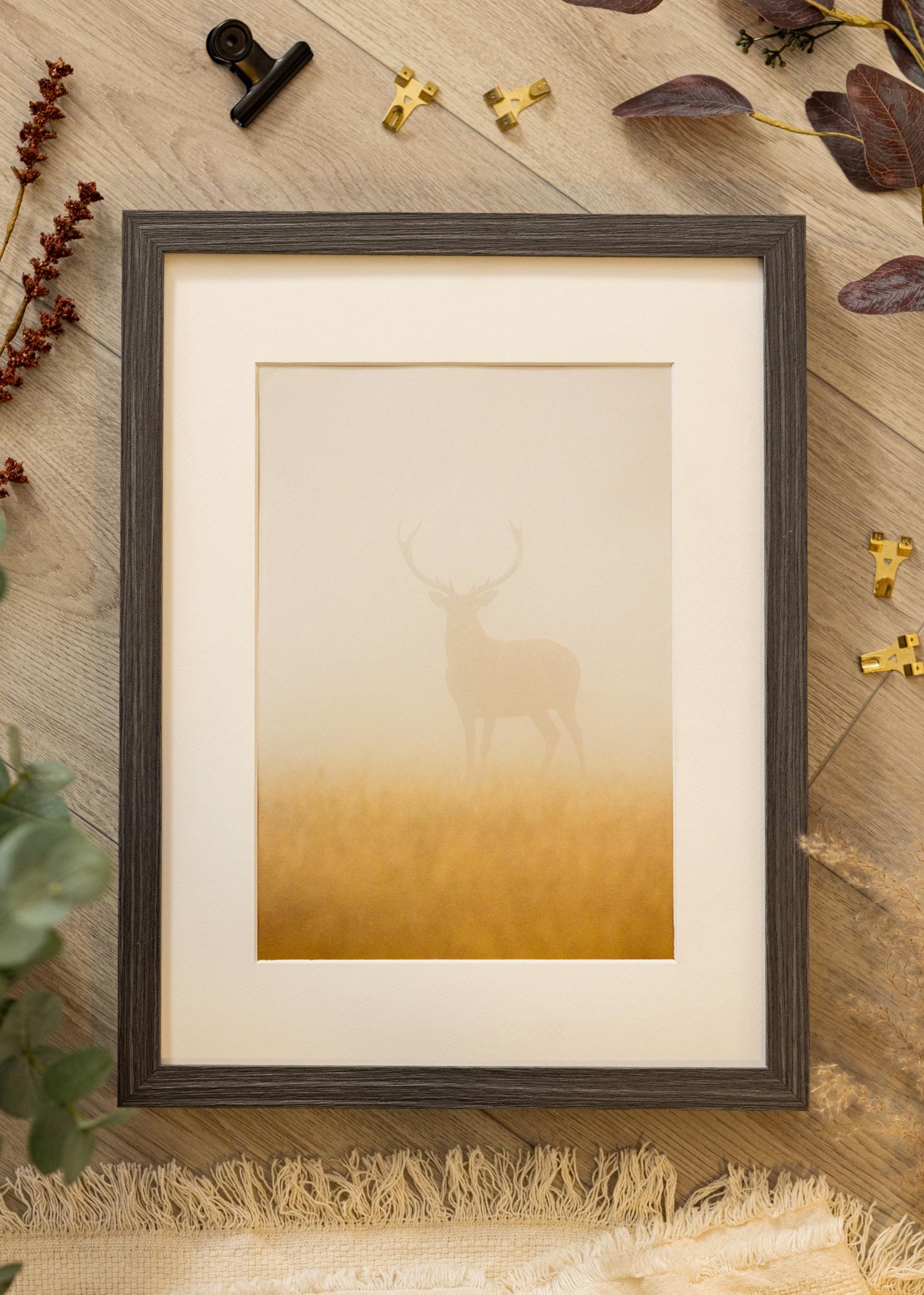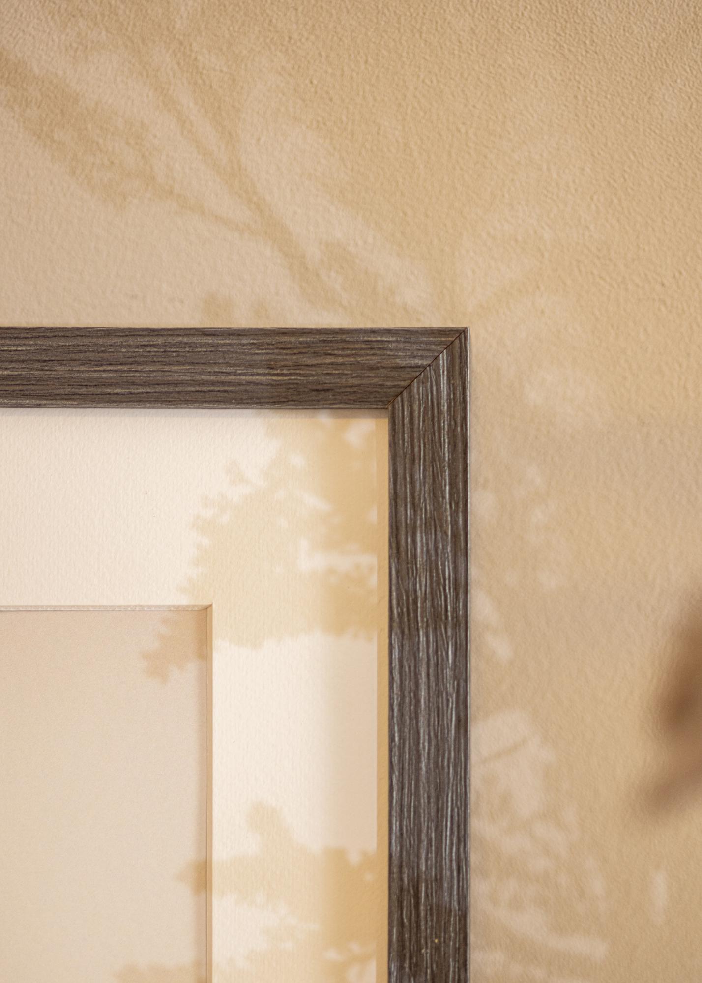 Wood Selection Grey I е рамка за картини по поръчка, която предлага перфектна комбинация от стил и функционалност. Със своя сив цвят и финиш от тъмнообагрено дърво, тази рамка придава изискана нотка на вашите снимки и произведения на изкуството. Естествената дървесна шарка се простира по ръбовете и създава визуална динамика, която привлича окото.