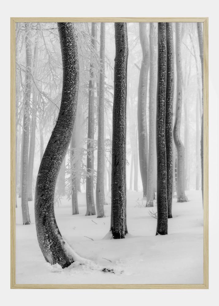 Един фантастичен природен постер с растящи дървета. Тази магическа картина показва тъмни дървета в заснежена гора. Вземете този постер вкъщи и внесете зимата в дома си по един фантастичен начин.