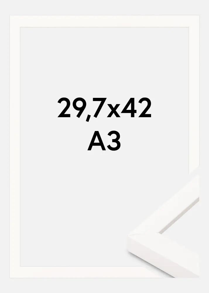 Търсите стилна и елегантна фоторамка за вашите любими мотиви? Тази бяла рамка за картини е перфектна за подчертаване на вашите снимки по изискан начин. С размери 29,7x42 см (A3) тя е отлична за по-големи фотографии или произведения на изкуството. Минималистичният дизайн на рамката с тънък, гладък профил създава модерно и чисто впечатление, което се вписва в повечето интериори.