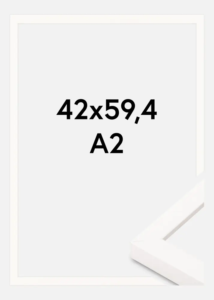 Тази стилна фоторамка в бял цвят е перфектна за подчертаване на любимите ви мотиви. С размери 42x59,4 см (A2) тя е идеална за по-големи снимки и постери. Елегантният и минималистичен дизайн с тънък, гладък профил придава стилно впечатление, което се вписва в повечето интериори. Повърхността е матова и има равномерно покритие, което позволява мотивът наистина да изпъква.