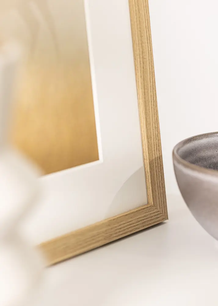 Тази фоторамка е перфектна комбинация от стил и функционалност. Със своя завършек в цвят дъб и модерен дизайн, тя се вписва в повечето домове и офиси. Рамката е проектирана да пасва на мотиви с размер 40x60 см, което я прави идеална за излагане на любимите ви снимки или произведения на изкуството. Светлият дъбов имитация придава топло и естествено усещане, докато дискретната дървесна структура допринася за елегантен и вечен вид.