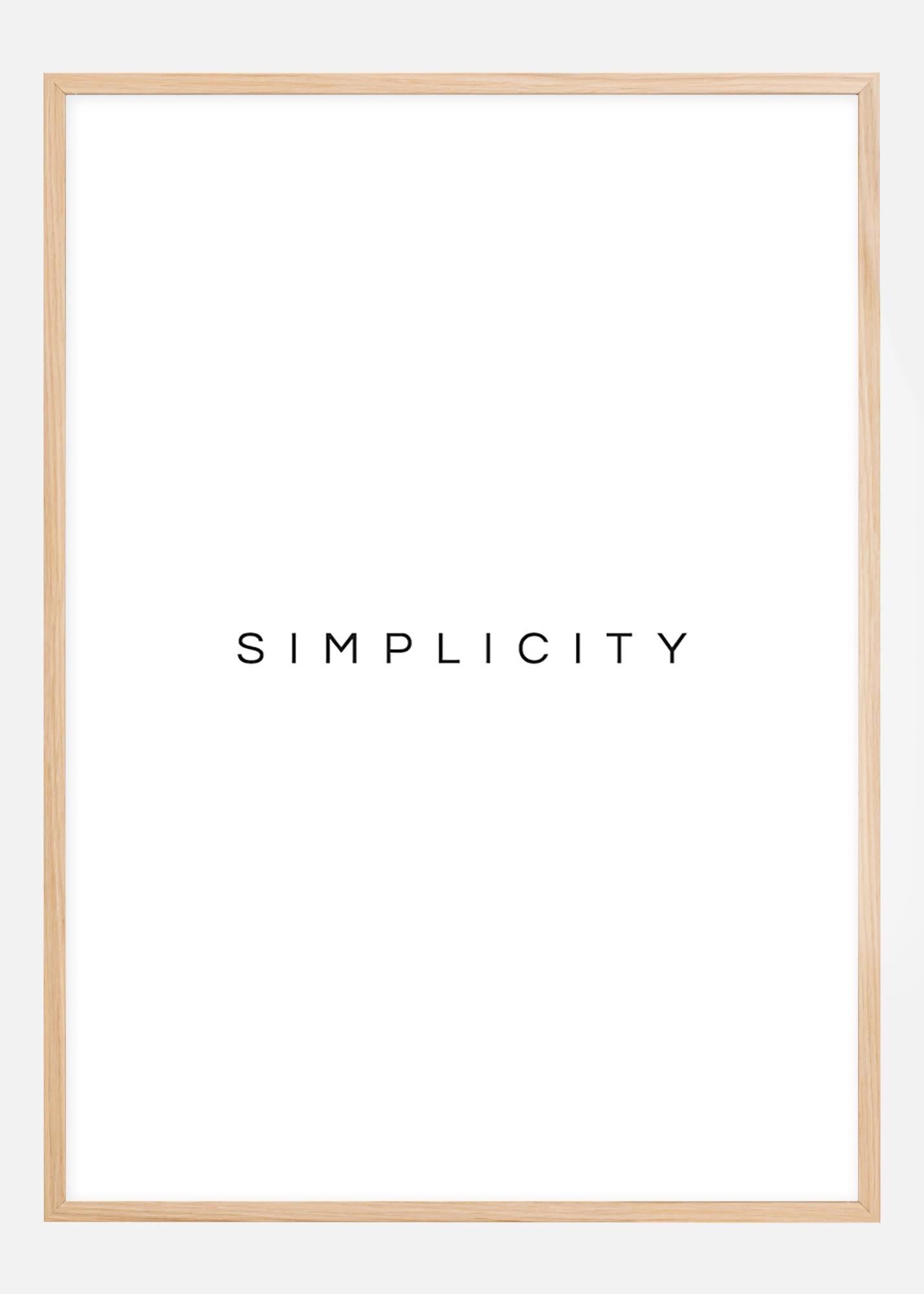 Минималистичен текстов постер с думата Простота, написана с черно в средата на бялото изображение. Никакви изискани шрифтове тук, както предполага думата, всичко тук е просто. Запазете минималистичната атмосфера и окачете това на обикновена стена, за да следвате съветите в това изображение.