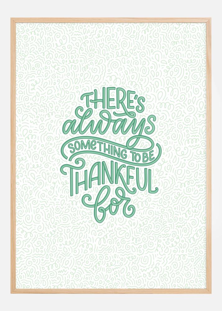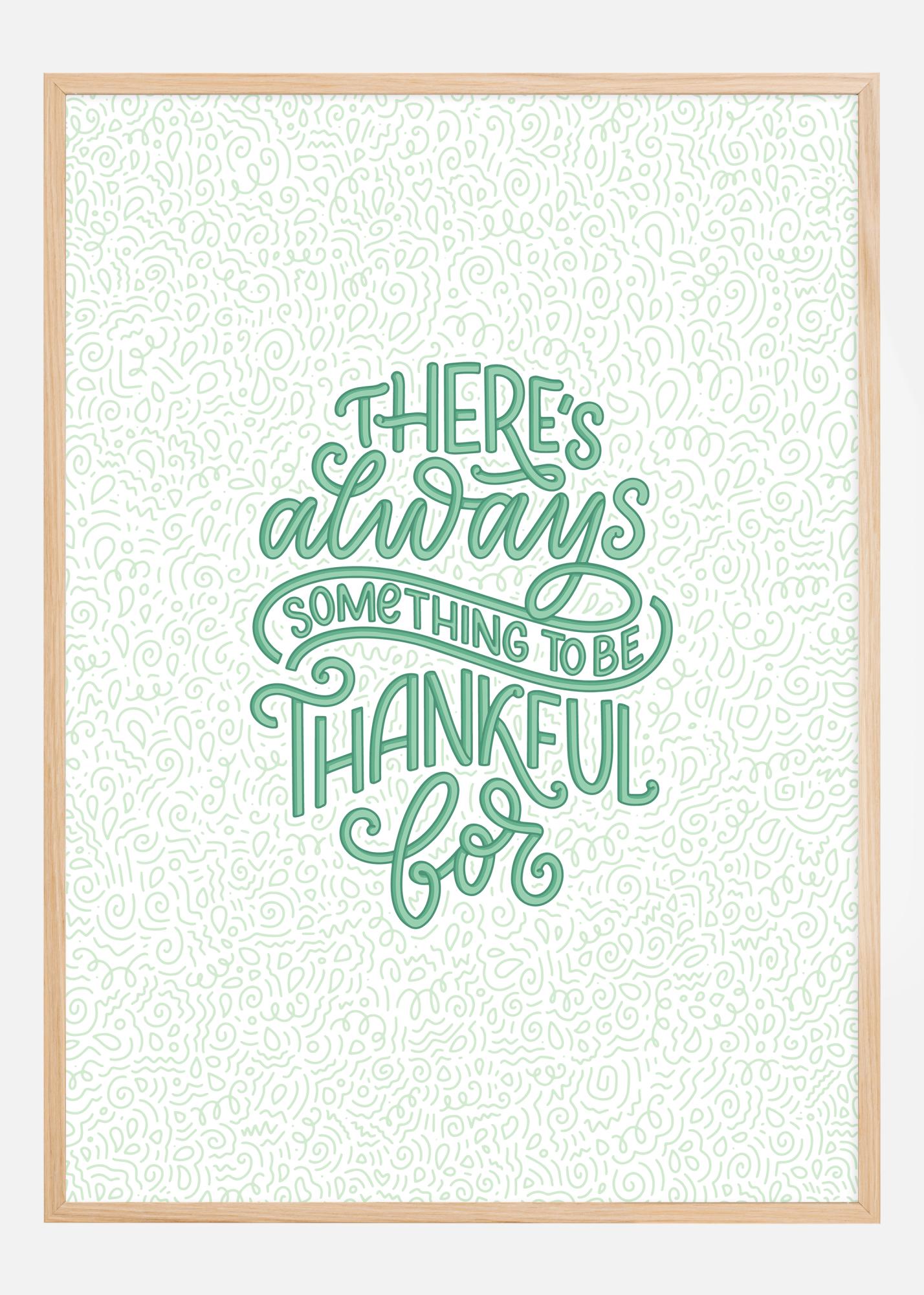 Този вдъхновяващ постер е призив към оптимизъм и благодарност, перфектен за разпространение на позитивни вибрации в дома или на работното място. Със своите живи зелени текстове, които гласят "Винаги има нещо, за което да бъдем благодарни" на фон с детайлна бяла основа, изпълнена с сложни линии и мотиви, той призовава към позитивна житейска перспектива и размисъл.