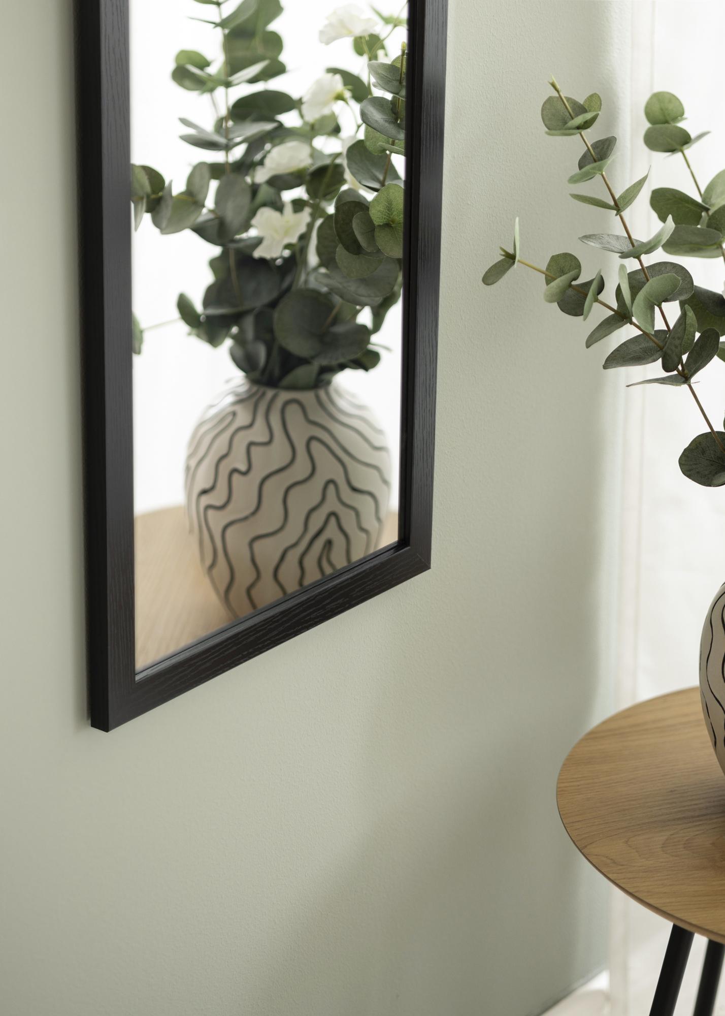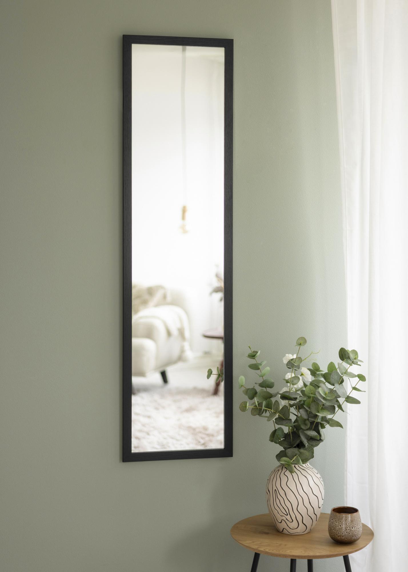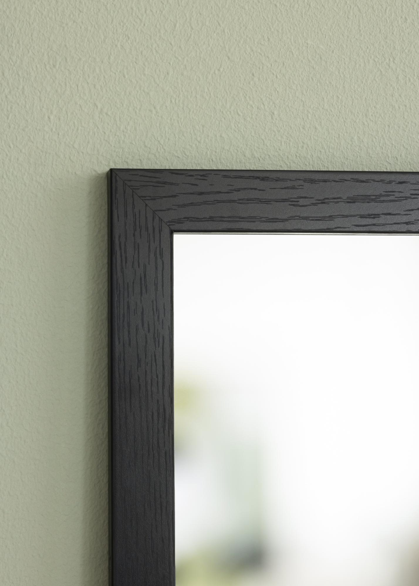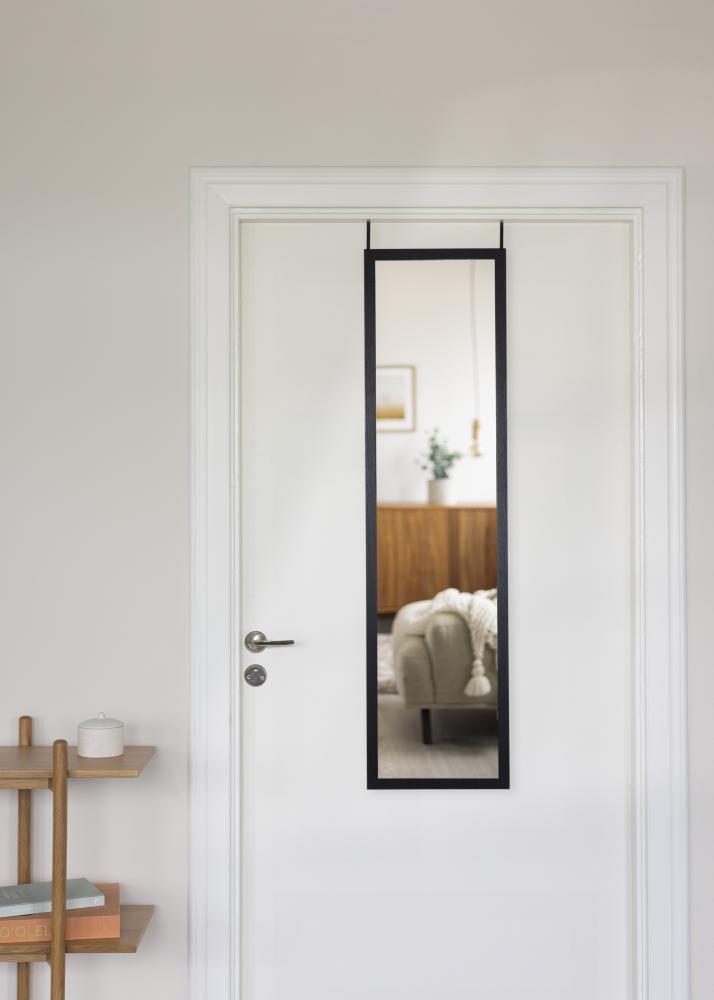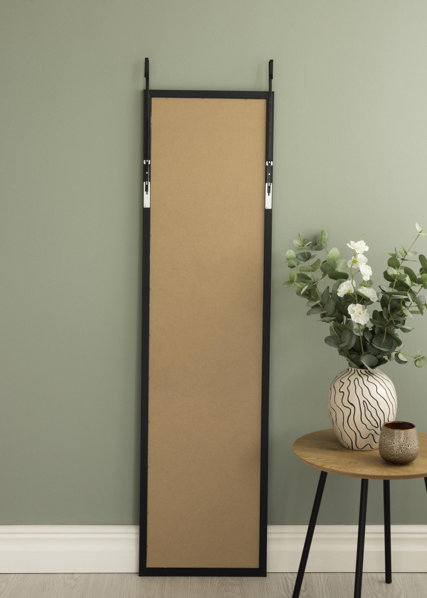 Това огледало за врата има елегантна и модерна дървена рамка в черен цвят, която придава топло и естествено излъчване. Матово покритие прави огледалото дискретно, като същевременно добавя структура и характер към стаята.