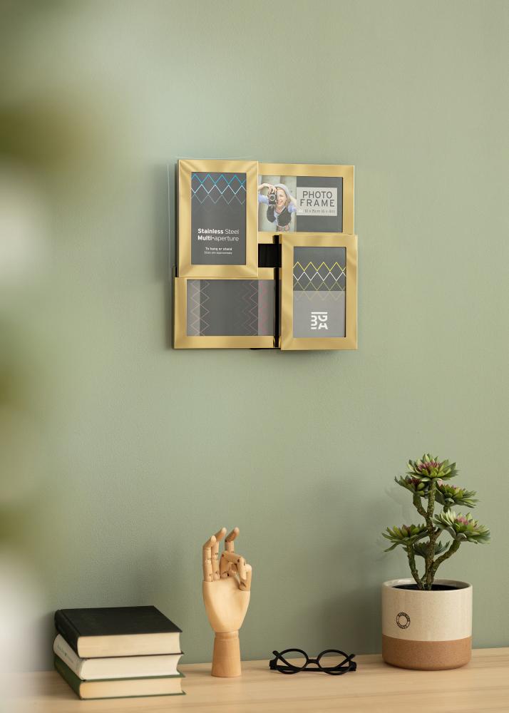 Stainless Steel Рамка за колаж Златно - 4 Снимки