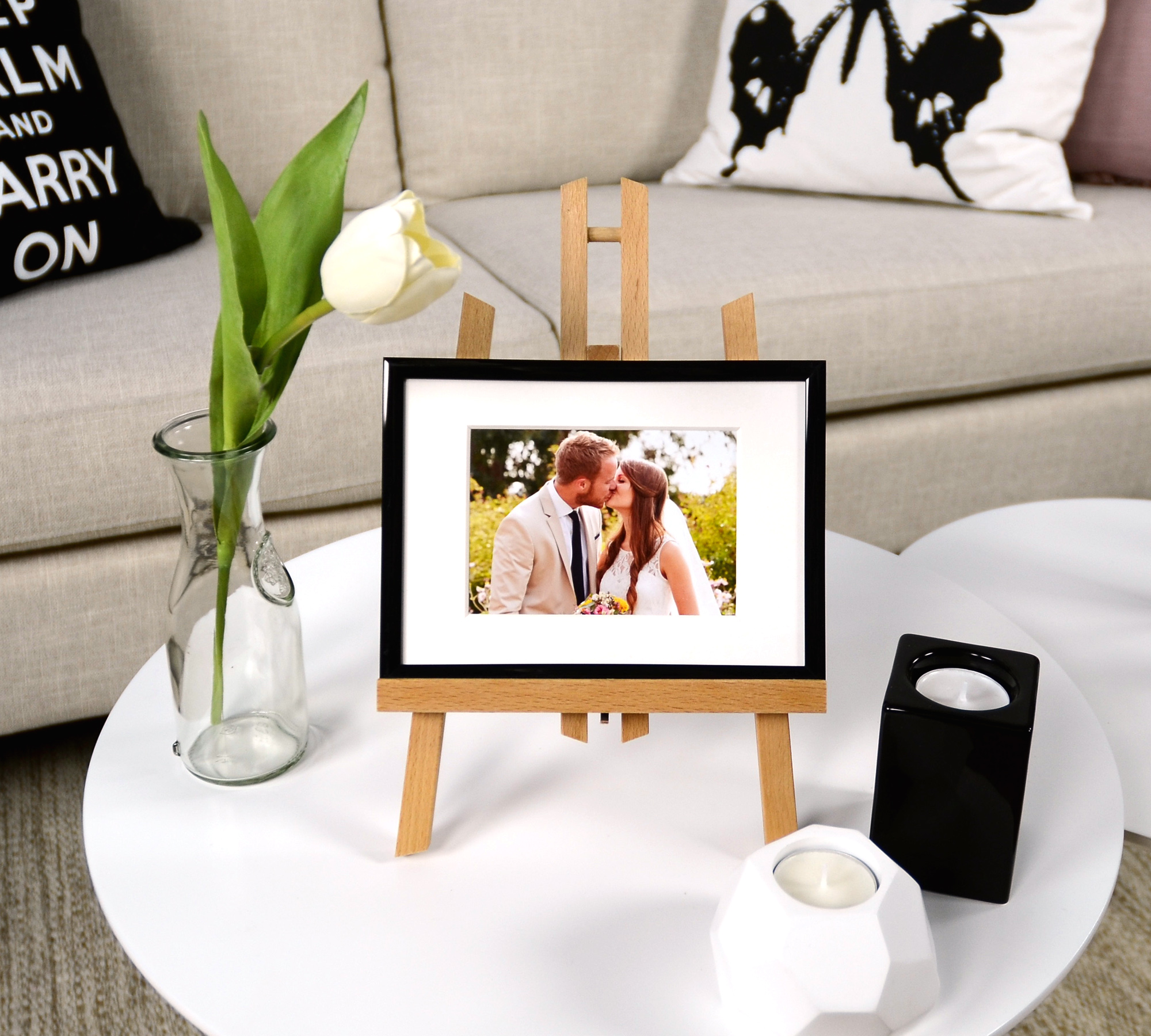 Елегантен дървен статив, който е идеален, когато искате да поставите своите най-фини рамкирани снимки на показ по прост начин, без да се налага да ги окачвате на стената.