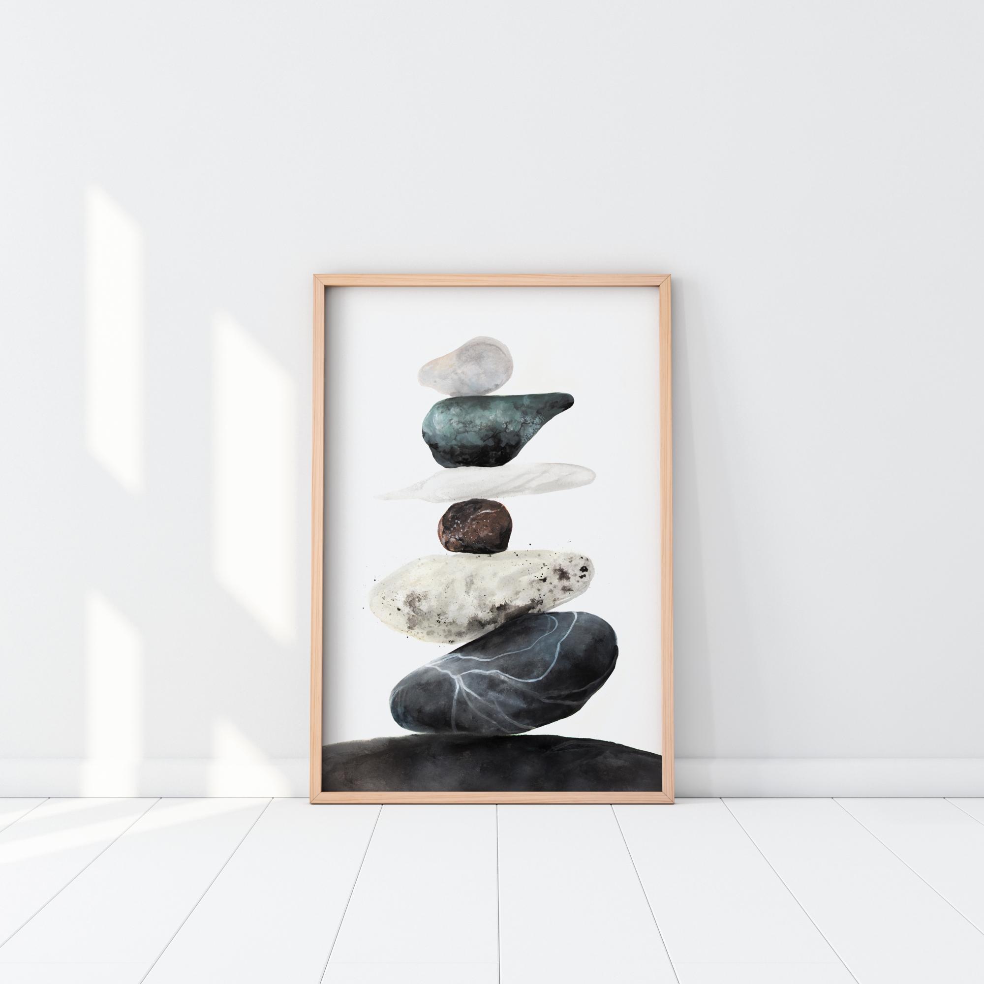 Елегантно изкуство от камъни, боядисани в красиво контрастиращи тонове, създадено от Емели Бенгтсон (EMELIEmaria). Спокоен и хармоничен плакат, който лесно се комбинира с други любими на по-голяма стена с картини. Подходящ за повечето домове и стилове на обзавеждане.
