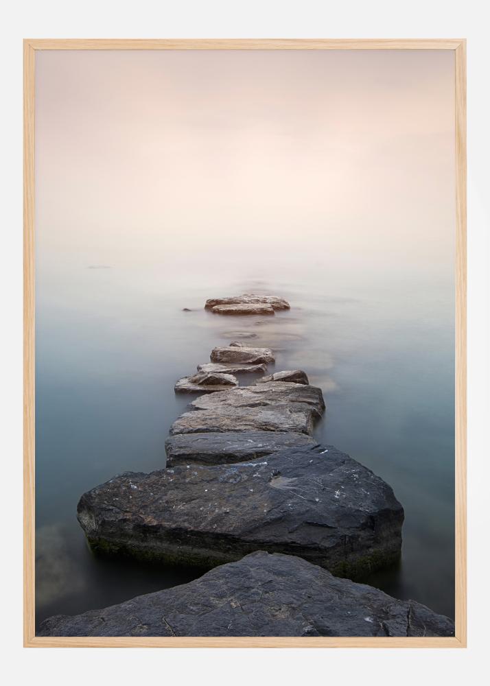 Един ефирен постер с камъни, които водят през езеро в неизвестното. Големи камъни водят до една мъглива света отвъд. Меки сини и розови цветове изпълват тази картина с мек магически допир. Направете първата крачка и вижте къде ще ви отведат краката ви.