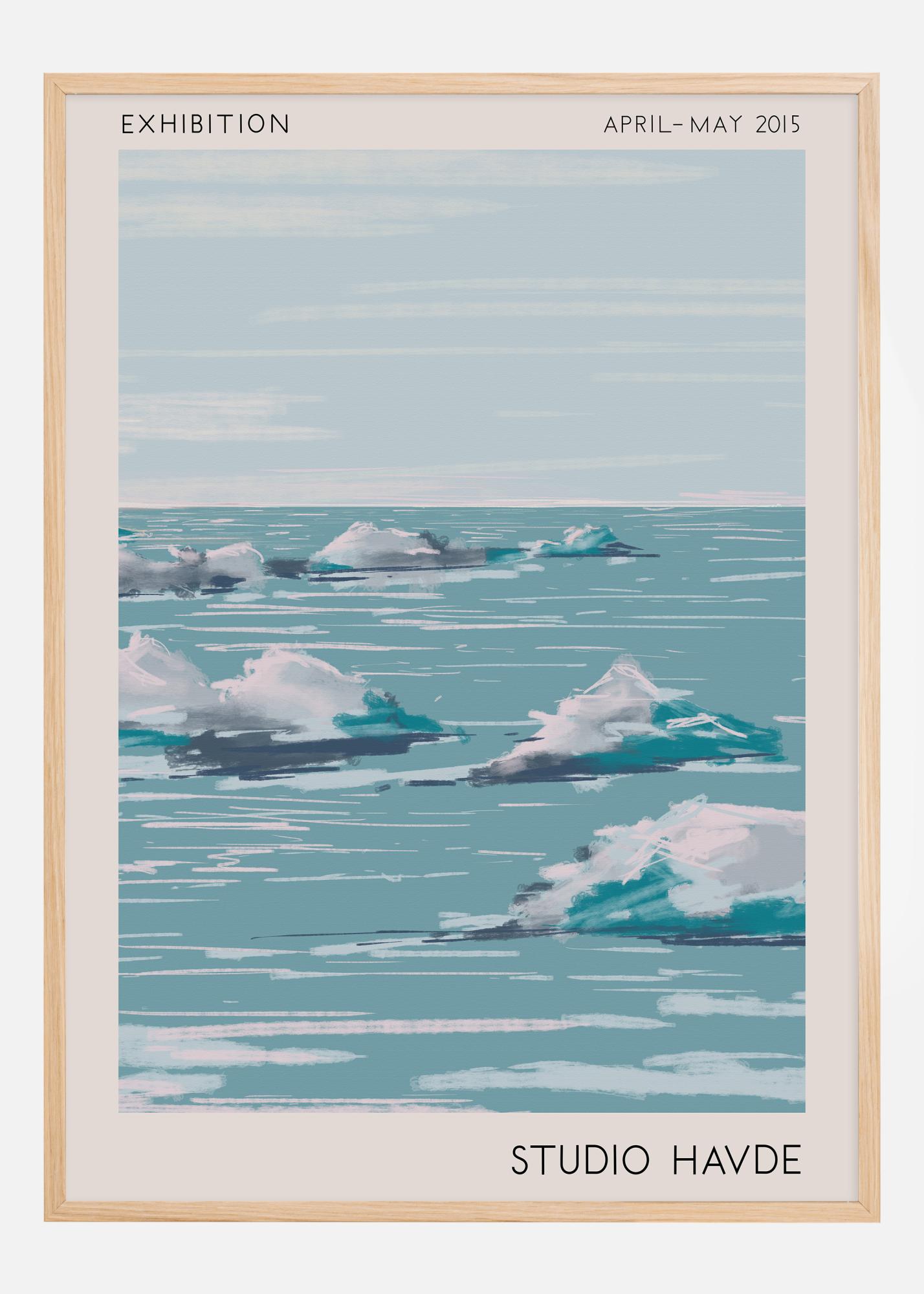 Този спокоен и атмосферичен плакат от изложбата на Studio Havde през април-май 2015 предава силно усещане за променящата се и мощна природа на морето. Произведението на изкуството изобразява серия от айсберги, които се разбиват през спокойната повърхност на морето, нарисувано в релаксираща палитра от студени сини и меки бели тонове, които създават усещане за студ и спокойствие в композицията. Тази сцена на арктическия пейзаж е както вечна, така и актуална, и отразява неукротимата сила и красота на природата.