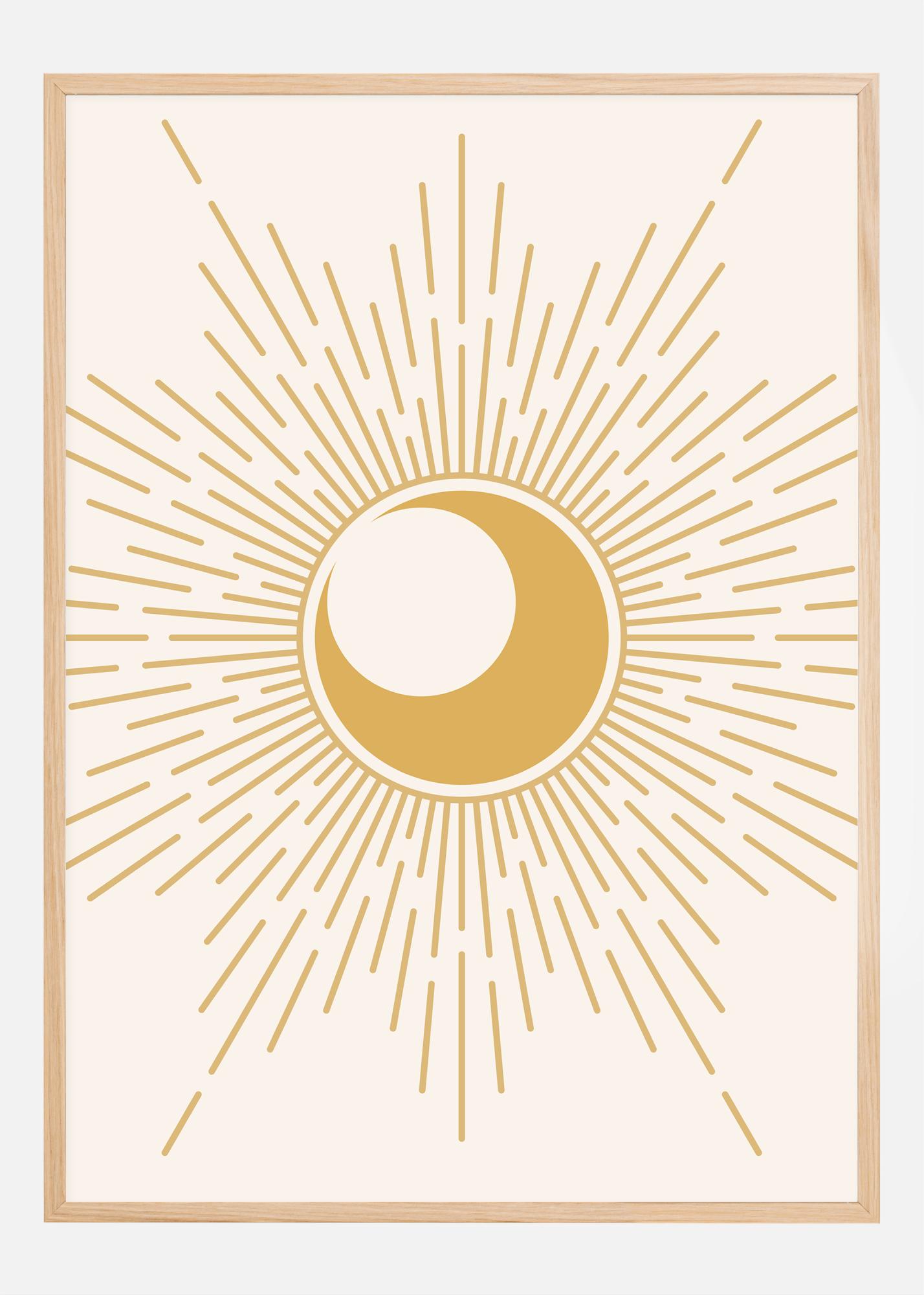 Този слънчев постер, който излъчва топлина и жизнена радост, е блестящо допълнение към всяка стая, която се нуждае от лъч светлина. С централно разположеното си златисто слънчево мотиво, заобиколено от сияещи лъчи светлина на меко тониран фон, дизайнът предлага усещане за жизненост и положителна енергия. Това е символично произведение на изкуството, което ни напомня за силата на слънцето да осветява и вдъхновява.