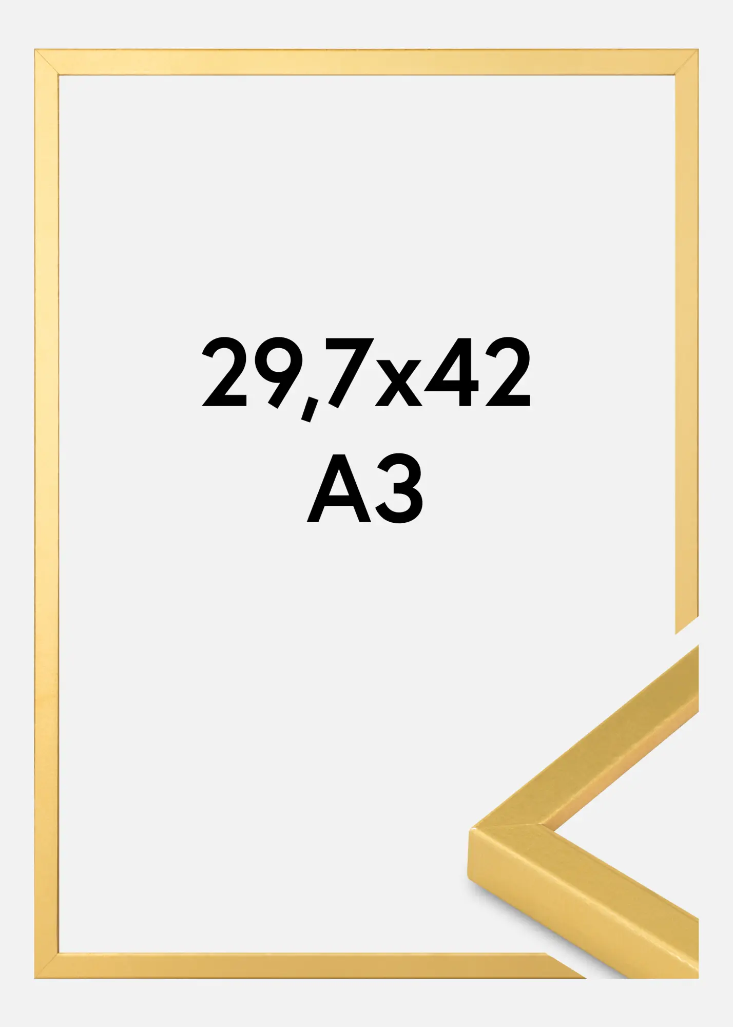 Тази фоторамка е перфектна комбинация от елегантност и съвременност, което я прави отлично решение за подчертаване на вашите любими мотиви. С размер 29,7x42 см (A3) тя пасва идеално за излагане на по-големи снимки или произведения на изкуството. Златистата повърхност има фин блясък и леко текстурирано покритие, което придава ексклузивен и изискан израз.
