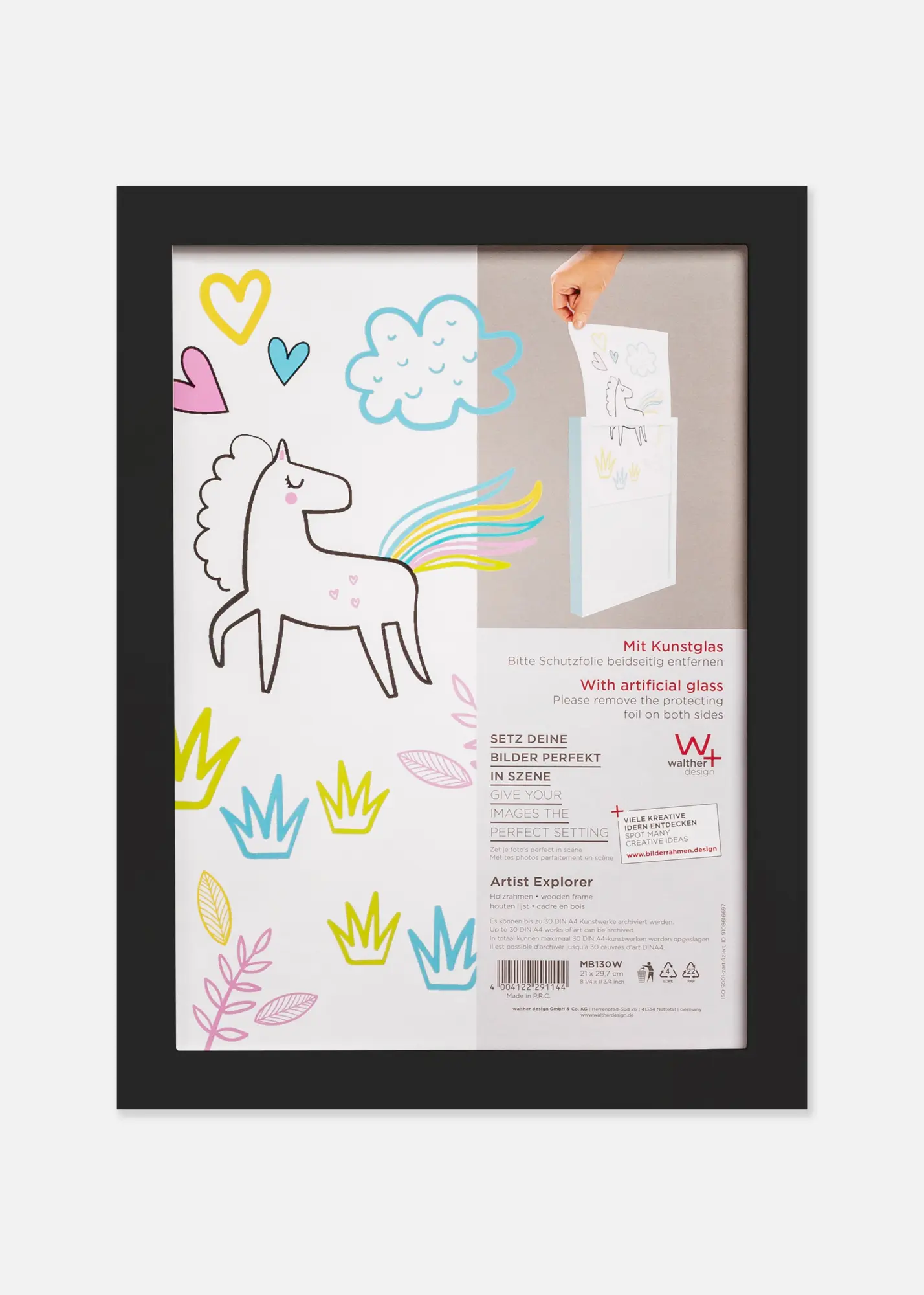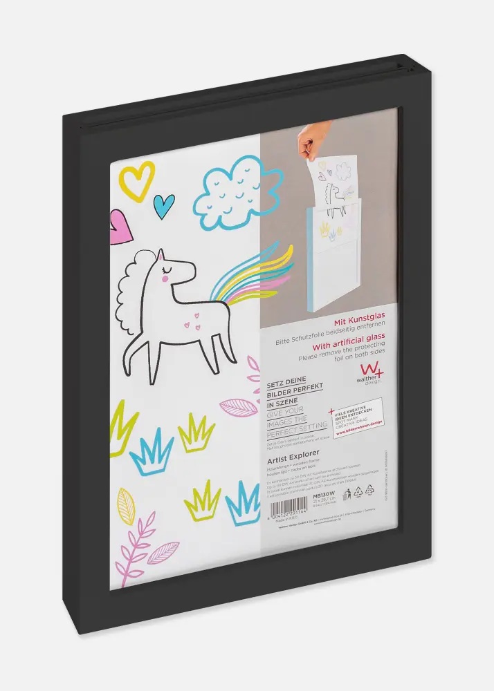 С размер 21 x 29,7 см, тази рамка е идеална за стандартизирани А4 хартии, което прави лесно да подменяте рисунките след като се създадат нови шедьоври. Тя е не само практична, но и стилен интериорен детайл, който пасва във всяка стая.