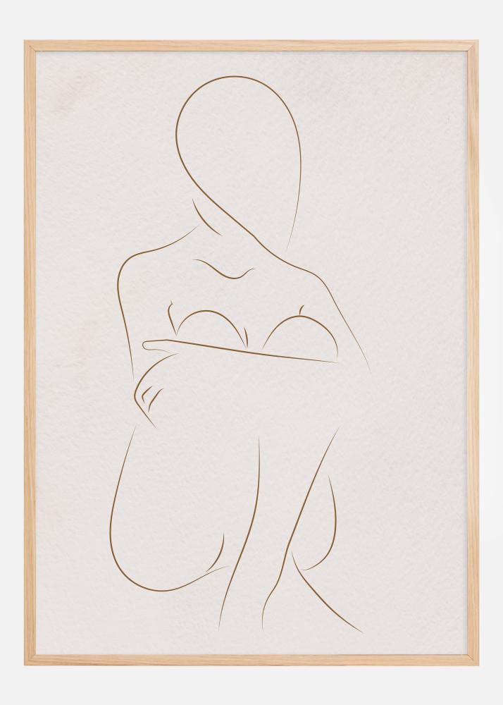 Този елегантен и минималистичен постер изобразява женска фигура, създадена с тънки линии, които пленяват със своята простота. Линейното изкуство използва финна и семпла естетика за да изобрази женската форма, което дава пространство за собствена интерпретация и фантазия на наблюдателя. Меките контури и семплото излъчване създават модерно и стилно впечатление, което пасва добре в минималистичен или скандинавски дизайнерски подход.