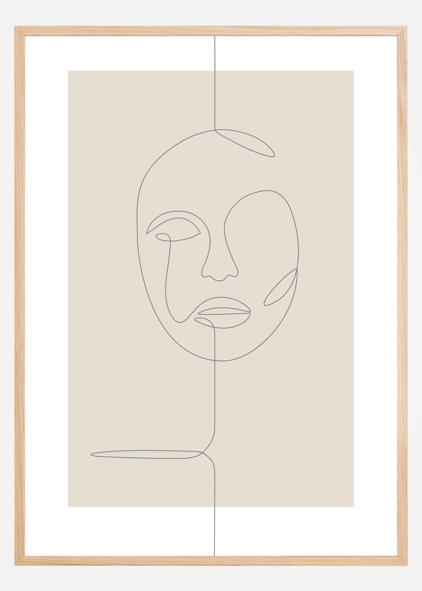 Плакат с тънка линия рисунка на абстрактно лице. Забавното тук е, че се използва само една линия, за да се създаде лицето. Линията пада отгоре като връв, извива се и създава лицето, преди да падне в дъното на изображението. Странно убедителният плакат трябва да се комбинира със смела стена, за да има по-голям ефект.