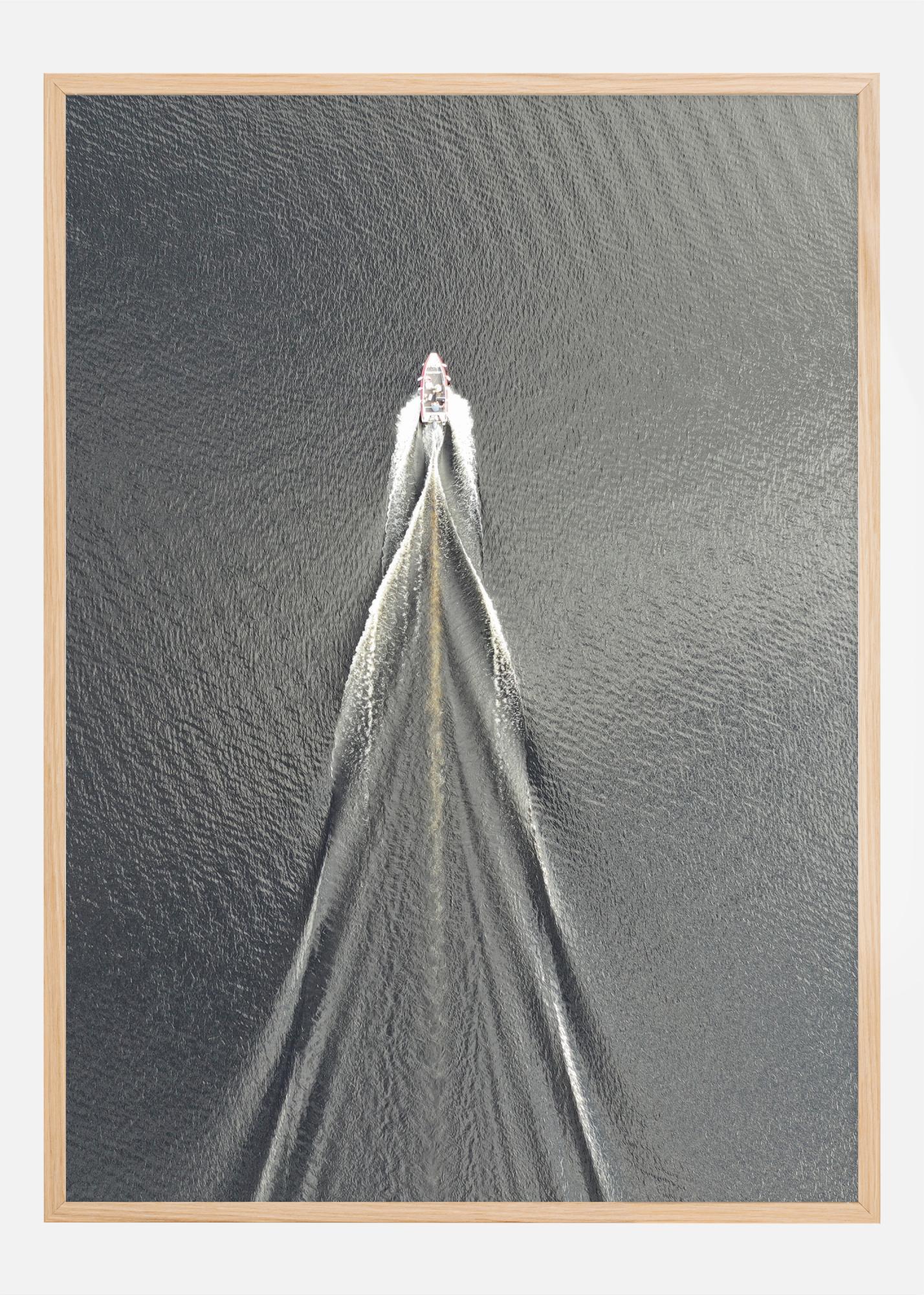 Постерът "Usain Boat" улавя същността на скоростта и свободата. Мощна моторна лодка прорязва спокойната вода, оставяйки впечатляваща следа като ясен знак за нейната скорост. Контрастът между тъмната, почти текстурирана вода и бялата пяна създава визуална динамика, която е едновременно успокояваща и ободряваща.