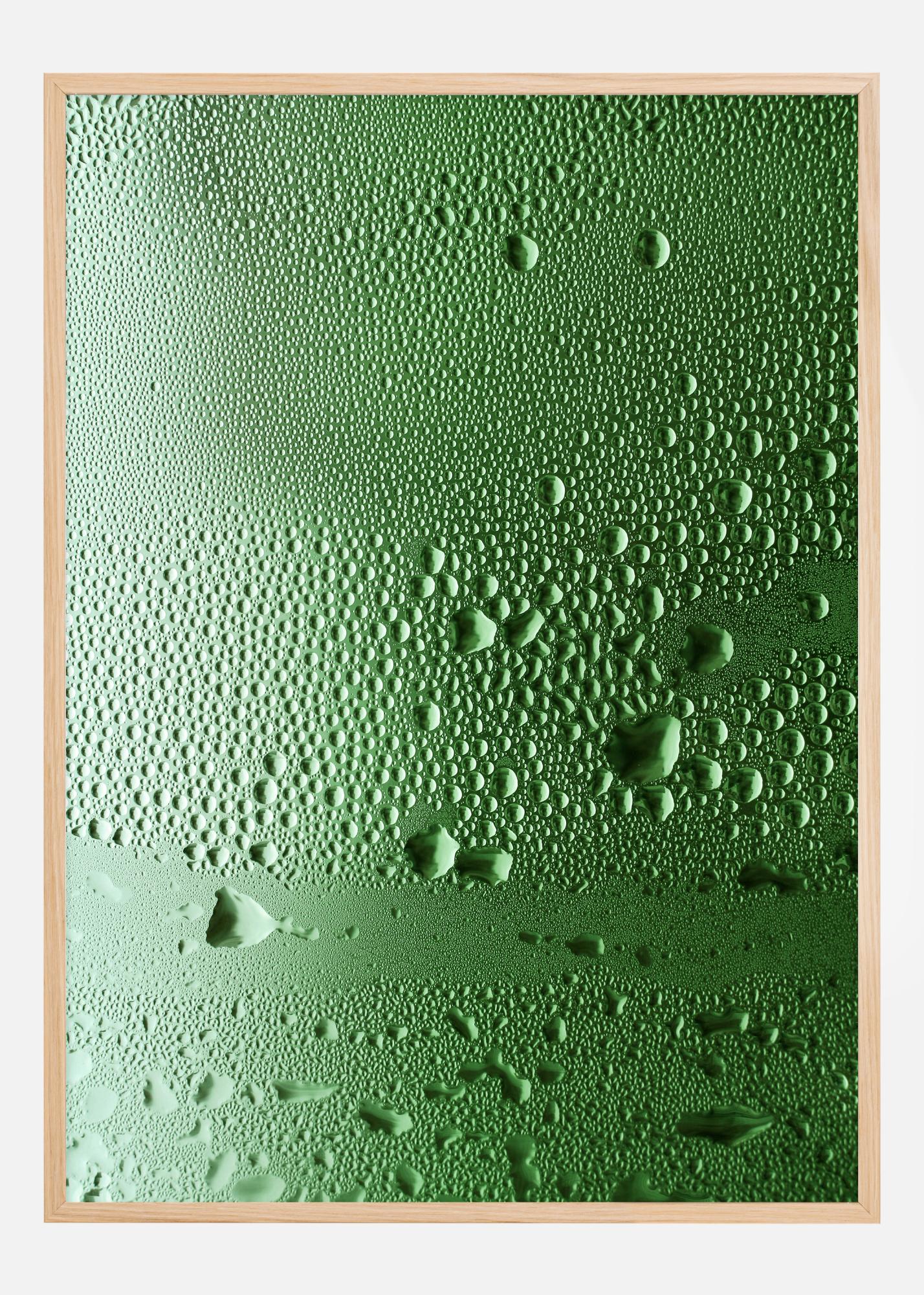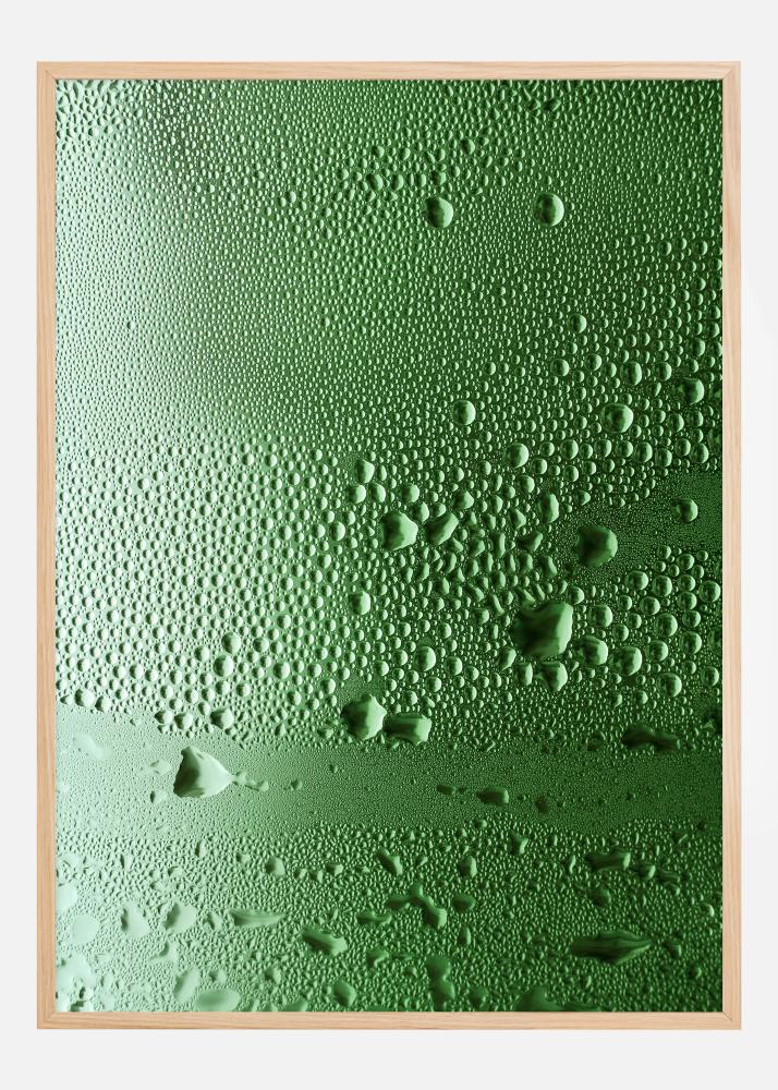 Открийте отново простата красота на елементите на природата с нашия постер, който подчертава свежестта на водни капки върху блестяща повърхност. Това произведение на изкуството улавя момента, когато капките спокойно почиват на жизнено зеления фон, всяка от които отразява светлината и добавя дълбочина и текстура към простата композиция. Този принт е фин напомнящ знак за чистите необходимости на живота и спокойното присъствие на природата.