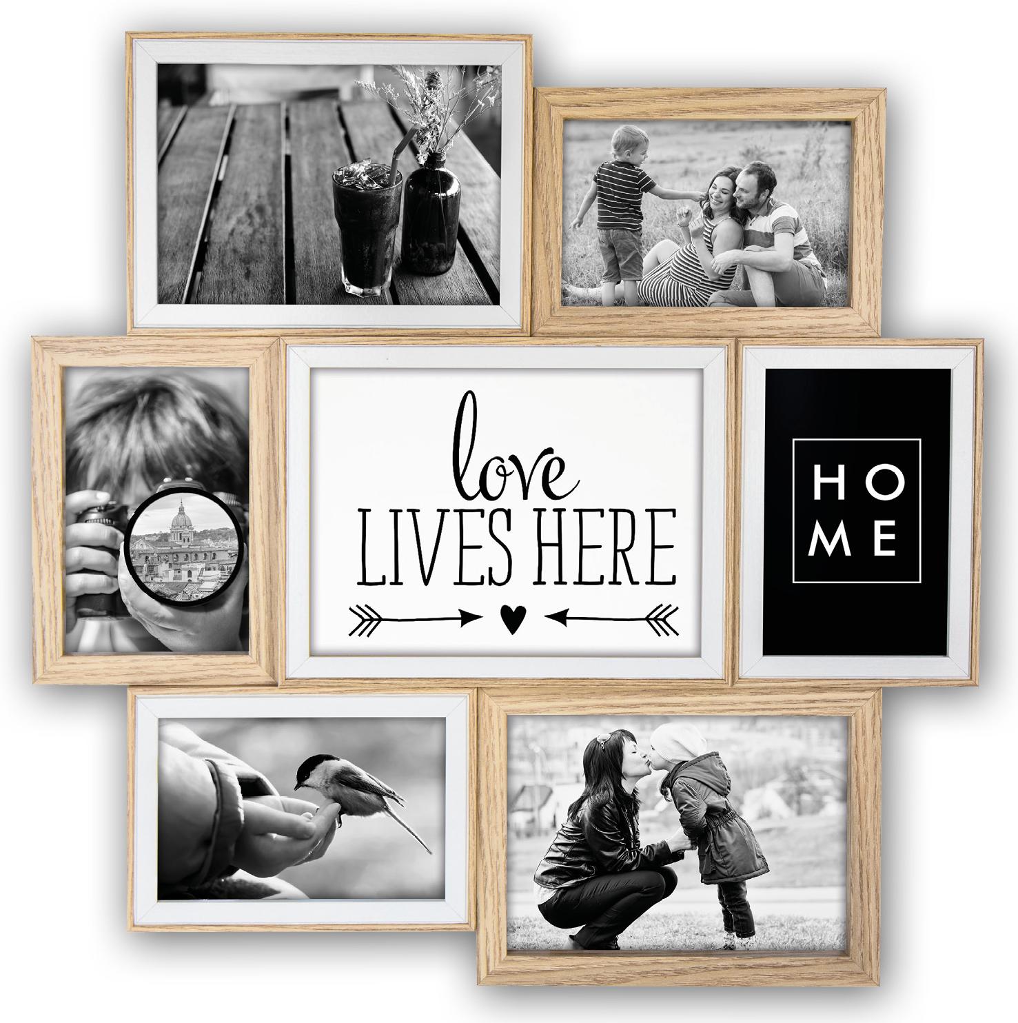 Стилна колажна рамка от дърво с място за 7 снимки в различни размери.