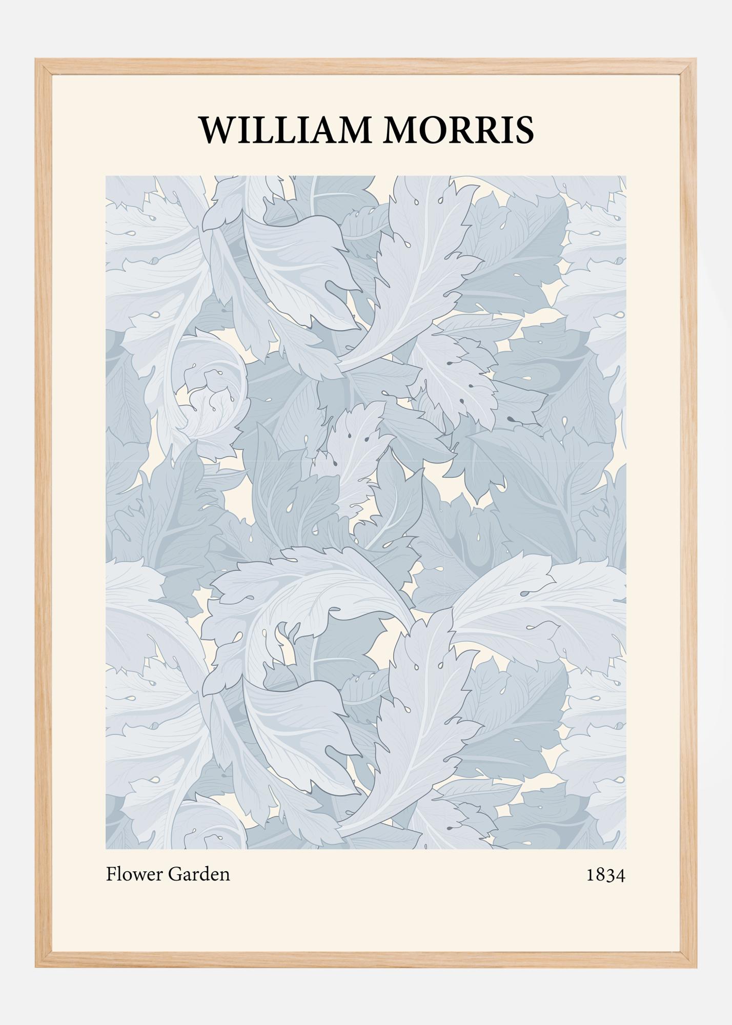 С атмосфера на спокойствие и елегантност, този плакат на Уилям Морис представя симфония от изящна зеленина в хладна и успокояваща цветова гама. "Flower Garden", както подсказва заглавието, улавя същността на буйна и тиха градина чрез своя детайлен листен модел, който плавно запълва повърхността с мек ритъм. Цветовата палитра е внимателно подбрана, за да отразява фината красота на природата и включва небесно синьо, листно зелено и бледо кремави цветове, които заедно създават хармонична и балансирана естетика.