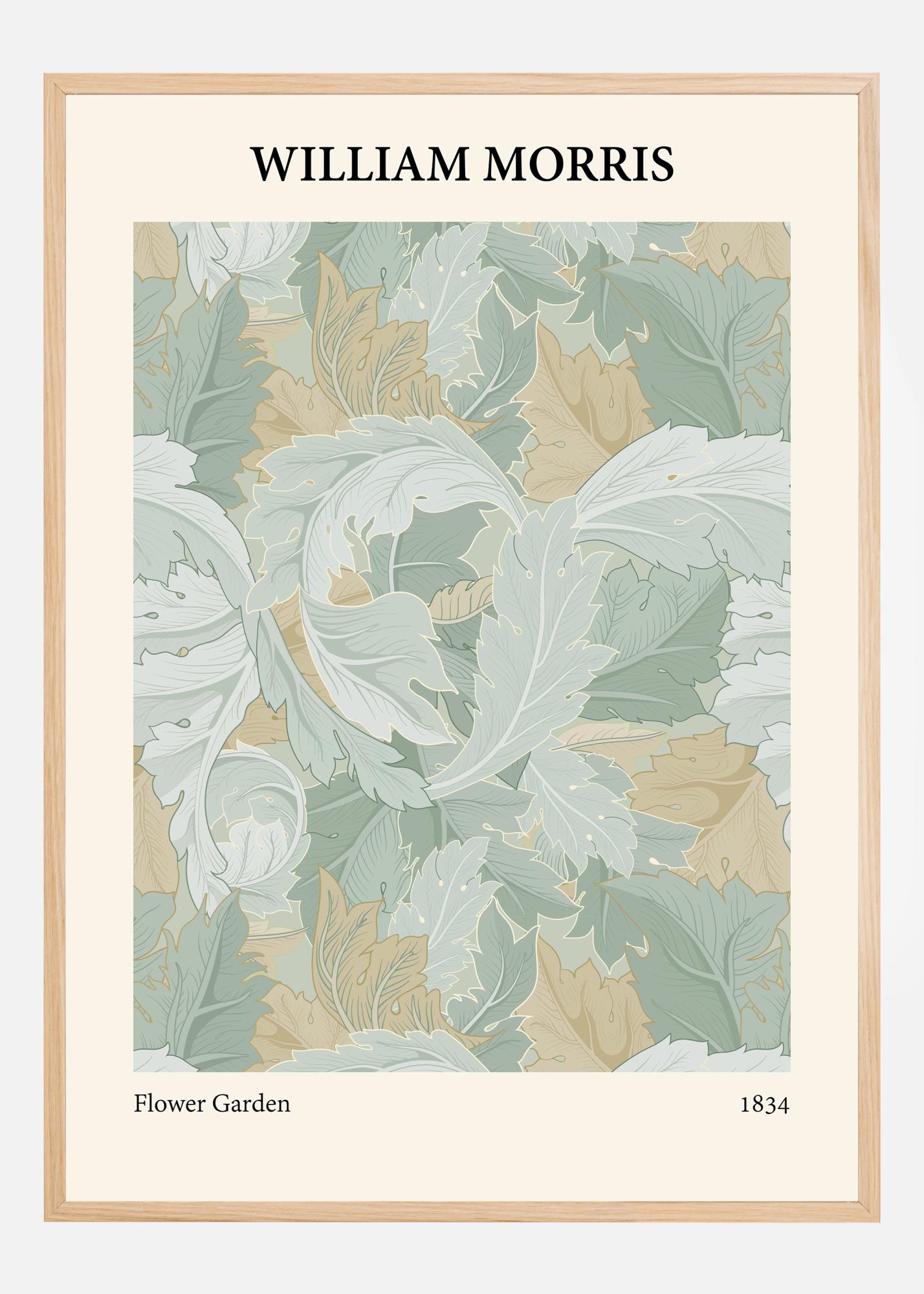 Този елегантен и увлекателен плакат е почит към Уилям Морис и неговия незабравим принос към дизайна и изкуството. С мотива си "Цветна градина", този принт представя една изискана композиция от листна маса и флорални форми, които се преплитат в цветова палитра от успокояващи синьо-зелени и топли бежови тонове. Всеки елемент е проектиран с характерния за Морис детайлизъм, което създава усещане за дълбочина и сложност, които могат да бъдат оценени при всеки поглед.